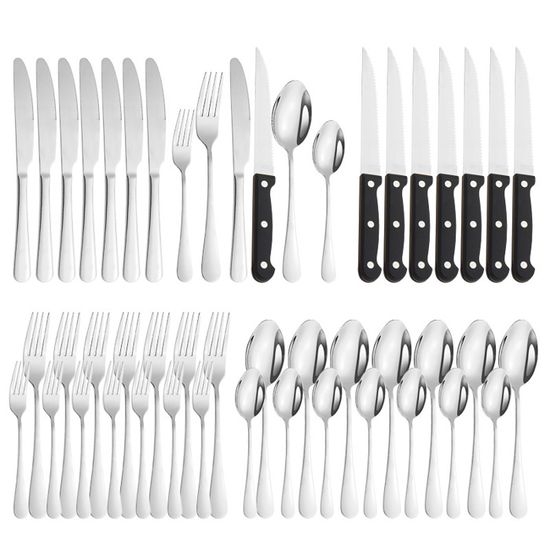 Matériau de qualité supérieure : fabriqué en acier inoxydable de haute qualité, sans nickel et sain pour manger, les couverts en acier inoxydable de qualité supérieure sont robustes et ne se plient pas facilement, antirouille et corrosion, garantissent une utilisation à long terme Les couteaux sont relativement dentelés, alors soyez prudent lorsque vous l'utilisez pour éviter de vous couper les mains., Merci., Contenu : 8 fourchettes (20 cm). Ensemble de couverts argentés Herogo au design simple et élégant, robuste et lourd, design ergonomique et bords doux pour une utilisation confortable. 8 couteaux de table (23 cm). Prise en main confortable : poignée lisse avec design ergonomique, épaisseur et poids adaptés pour tenir confortablement, offre une excellente prise en main pour les enfants et les adultes lorsqu'ils utilisent notre ensemble d'argenterie. Maintien : courbe ergonomique et lisse. Vue De Dessous Fourchette Cuillère Couteau Avec Reflet Dans Le Miroir... Nous sommes spécialisés dans le développement commercial de couverts depuis plus de 10 ans et avons notre propre usine. Résistant à la corrosion : oui., Anti-rouille : oui. Instructions d'utilisation (français non garanti)., 1., Veuillez laver l'ensemble d'argenterie avant la première utilisation pour une utilisation saine., 2., Veuillez nettoyer l'ensemble d'argenterie après utilisation et sécher avec une serviette douce pour plus de durabilité., 3., Veuillez ne pas utiliser de brosses en fer ou d'éponges dures pour rayer l'argenterie afin de garder la surface lisse., 4., L'ensemble d'argenterie passe au lave-vaisselle afin que vous puissiez le passer au lave-vaisselle pour économiser votre travail. MENAGERE,gold 1set--Ensemble de couverts en acier inoxydable, 4 pièces Livré avec une boîte exquise, comme un excellent cadeau pour la famille et les amis, également les couverts en argent font un bon choix pour un usage quotidien Menagere 32 Pieces Inox Ménagère Pour 6 Personnes, 36 Pièces, En Acier Inoxydable, Avec Couteau 32 Couverts 8 cuillères à soupe (20 cm). Service de couverts pour 8 personnes : lot de 32 couverts comprenant 8 fourchettes, 8 couteaux, 8 cuillères, 8 cuillères à café. Caractéristiques du produit : Matériau : acier inoxydable de qualité supérieure., Finition : poli miroir. CAOPAOTI Enseble couverts de table 24 pièces, Service de couvert acier... Si vous choisissez nos ustensiles, ils apporteront une merveilleuse expérience de dîner et une profonde satisfaction pour votre famille ou votre fête.