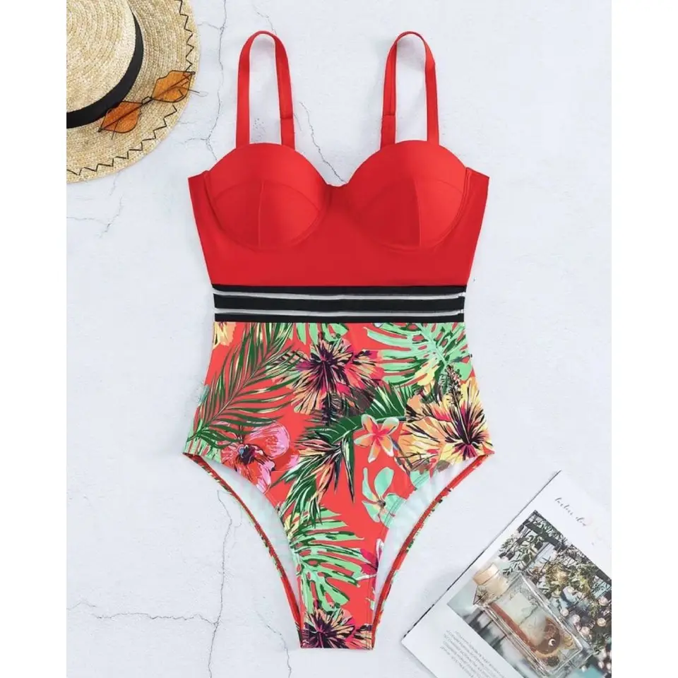 Maillot De Bain 3 Pièces Taille C, Motif Tropical 🌴🌺 (Neu Und