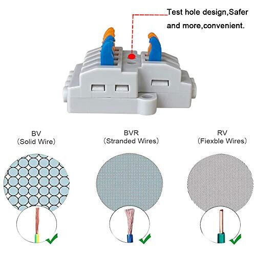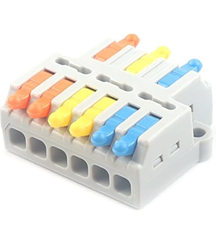 ▶Ils sont parfaits pour les connexions amovibles car il n'est pas nécessaire de souder. Convient aux fils de cuivre de taille 0., 08~4 mm² / 28~12 AWG. ●Résistance à la corrosion, résistance aux températures élevées et au vieillissement. Puisque la force de serrage peut être ajustée automatiquement avec l'épaisseur du conducteur, le contact du conducteur est fiable et n'est pas affecté par la technologie d'installation., ▶100% Satisfaction Garantie! FULARR Lot de 9 connecteurs de fils à levier et écrou de qualité supérieure, connecteurs de fils compacts 2 entrées et 4 sorties, type d'épissure, connecteurs à ressort (KV424 ●Point de test intégré., ●Connexion sans entretien. Convient aux fils de cuivre solides de taille 0., 08~2., 5 mm² / 28~14 AWG. La technologie de serrage à ressort est fiable et ne tombe pas. Spécifications: ●Matériau: Cuivre Étamé + Nylon Modifié PA66 ●Taille: 4., 2 X 2., 6 X 1., 5 cm (L*W*H) ●Poids: 10 g ●Couleur: Orange + Bleu + Gris ●Forfait Comprend: KV424 Levier-Écrou Fil Connecteur X 15 Pièces Tension nominale 600V / 4KV, courant nominal 32A, puissance nominale 7KW. Branchez et jouez, puis terminez. Connectez toute combinaison de fils de cuivre solides, toronnés et flexibles plus rapidement et de manière plus fiable. If you need to change other wires, just lift up the small lever and pull out what you need and replace it, which is very convenient. Made from the best flame retardant insulating material Nylon PA66 ●Le levier de commande évite le besoin d'outils. Domino Electrique TIANYI-15 Pièces KV424 Levier-Écrou Fil Connecteurs, 2 In 4 Out 6 Ports Conducteur Compact Fils Connecteurs Compact Connecteur Ressort Bornier Wago 5 Entrées Aiqeer 15 Pièces KV424 Levier-Écrou Fil Connecteurs, 2 in 4 out 6 Ports Conducteur Compact Fils Connecteurs, Compact Connecteur Ressort Bornier. 4,3 sur 5... ●Différents types et tailles de fil peuvent être combinés dans un seul connecteur. ▶Fabriqué à partir du meilleur matériau isolant ignifuge Nylon PA66., Avec les avantages de la longue durée de vie, de la résistance à la corrosion, de la résistance au vieillissement, de la résistance à haute pression, de l'isolation et du retardateur de flamme, il peut efficacement empêcher les fuites électriques. ●La température maximale de service continu est de 105°C. ●Faible coût d'installation et fonctionnement sécurisé. Différents fils sont gérés séparément, différents diamètres peuvent être connectés en toute sécurité.