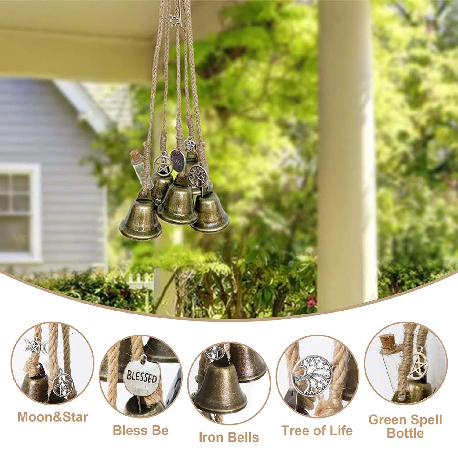 Caractéristiques : 1., Les clochettes de sorcière sont conçues pour le carillon lorsque la porte est ouverte ou fermée, protégeant ainsi la maison des énergies négatives qui entrent., 2., Un talisman de protection utilisé pendant longtemps pour votre maison, la sonnerie des cloches permet de libérer l'espace d'énergie négative. La couleur réelle peut être légèrement différente de la photo en raison des différents réglages d'écran et effets de lumière. La clé est un charme de protection pour votre maison et toutes les personnes qui y vivent., 5., Design léger, facile à accrocher où vous voulez. Carillon Arbre de Vie | L'Arbre Magique Pendentifs uniques en forme de carillon éolien - Amulette de... Sorciere Decoration SOARFLY Cloches De Sorcière, à Suspendre Pour Porte, Carillon éolien Bohème à Suspendre, Cloches Feng Shui Pour Porche, Jardin, Fenêtre (55 Cm Carillon à Vent Un petit lot de clochettes de sorcière dispose de trois clochettes, une breloque pentagramme, un charme béni et un sort de protection traditionnel en sel noir dans une petite bouteille en verre. PENDENTIF DE PORTE élégant pour la protection et la bonne chance avec Un talisman de protection utilisé depuis longtemps pour votre maison, la sonnerie des cloches permet de libérer l'espace des énergies négatives., 27 , 20 Remarque : Les mesures étant prises à la main, les tailles indiquées peuvent varier de 1 à 3 cm. Design léger, facile à accrocher où vous voulez.