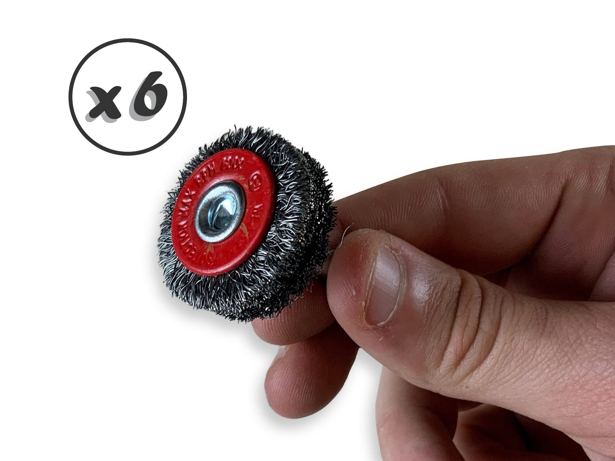 Sélectionnez la brosse adéquate, utilisez-la à basse vitesse avec une pression légère, et maintenez son entretien pour prolonger sa durée de vie. Pourquoi utiliser une brosse en bout rotative sur tige ? Choix de tailles : Disponible en 4 diamètres : 12, 18, 22 et 28 mm pour s’adapter à vos besoins. Lot de 10 brosses rotatives métalliques en bout 28 mm Kibros - Brosserie 100 % Française Les brosses en bout sur tige Les brosses rotatives en nylon, idéales pour nettoyer et polir sans risque, sont essentielles pour des finitions de qualité sur divers matériaux. Que ce soit pour traiter des surfaces délicates ou pour des applications plus robustes, elle assure une application optimale sans compromettre la qualité du travail. Brosses rotatives circulaires métalliques sur tige 30 mm | Fil inox... Compatibilité universelle : Brosse en bout sur tige adaptée aux perceuses et visseuses à mandrin. Leur précision assure une préparation et un nettoyage efficaces, cruciaux pour des résultats professionnels. Disponible dans une gamme de matériaux tels que le nylon, l'acier, et le laiton, cette brosse s'adapte aux besoins spécifiques de chaque projet. Utilisation polyvalente : Parfaite pour le décapage, le dérouillage, le nettoyage de soudure et les surfaces métalliques. Lot de 160 ebouts en caoutchouc de tailles assorties, capuchons de... Brosse Métalliques Castorama Lot De 6 Brosses Rotatives Circulaires Métalliques Sur Tige 30 Mm | Fil Acier Souple 0,20 Mm | Epaisseur 18 Mm | 3 Rangs | Pour Perceuse Ou Visseuse à Mandrin | Kibros 2630AV18x6 Brosse Visseuse La brosse en bout rotative sur tige, conçue pour les travaux précis dans des zones difficiles d'accès, facilite l'ébavurage, le nettoyage, et le polissage sur divers matériaux.