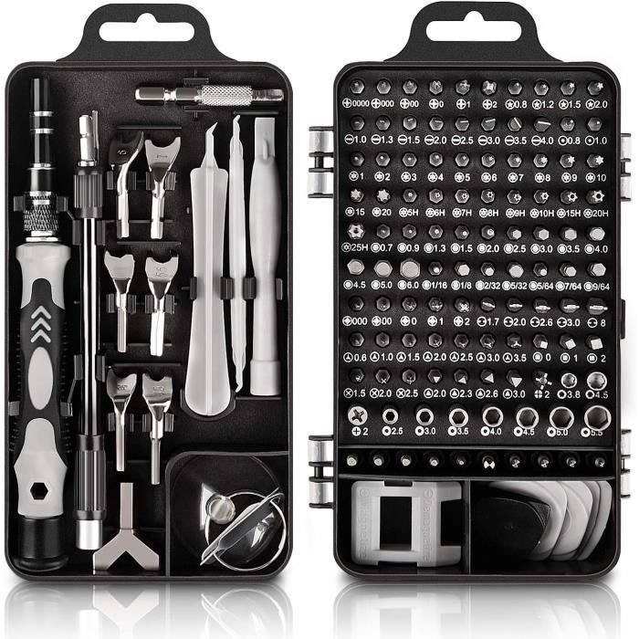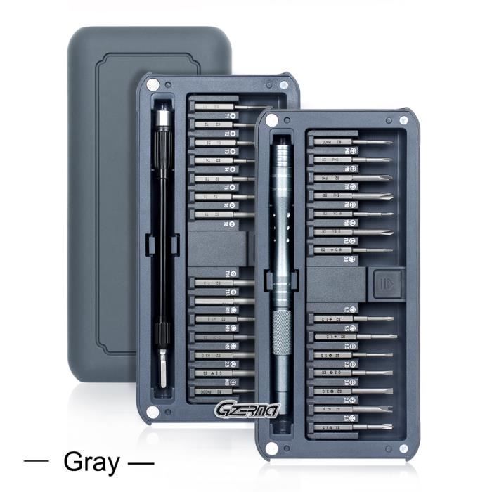 Variété d'embouts : ce lot de mini tournevis est livré avec une boîte avec 42 têtes de vis de formes différentes, divisées en 9 types. Durable et robuste : ce lot comprend 42 têtes de tournevis de précision fabriquées en acier CR-V après traitement à haute température. Rassurez-vous, tous nos produits sont livrés avec une garantie de 18 mois, un support technique à vie et un service client convivial 24 heures sur 24. L’ensemble complet de tournevis de précision KLEIN TOOLS – 39 pièces est conçu pour répondre à tous vos besoins de réparation électronique, informatique et domestique. Grâce à ses embouts de qualité industrielle traités thermiquement, ce kit garantit une durabilité exceptionnelle et une performance optimale, même pour les tâches exigeantes.Idéal pour la réparation de... Ce kit de réparation utile est également un cadeau cool et décent pour vos amis, père, mari, fils, etc. Rangement facile : la boîte à ressort aide à organiser les accessoires, éliminant le souci de les perdre ou de les mélanger. Grande résistance et réduit les risques de casse de la pointe et de la lame Poignée ergonomique en acétate de cellulose pour un meilleur contrôle durant le travail et plus de confort Repose doigt pivotant avec haut de la poignée alvéolée pour un meilleur maintien Ce que vous obtenez : ce lot comprend un mini tournevis magnétique avec 42 têtes, une poignée antidérapante, une tige d'extension et une pince. La boîte est clairement marquée avec différents types de têtes, ce qui vous permet de trouver rapidement celle dont vous avez besoin. La pince en acier inoxydable et une tige d'extension de 12 cm vous aident à travailler dans des espaces étroits. Outils Réparation Smartphone Kit Tournevis Precision 150 En 1 Magnétique - Pour IPhone, PC, MacBook, Montres... Set Bricolage Precision Kit Tournevis Leroy Merlin Console De Jeux STREBITO Kit De Tournevis De Précision 142 Pièces Pour Ordinateur, Kit Tournevis Précision Pour Lunettes Kit De Tournevis De Précision 126 En 1 Avec 111 Embouts Magnétiques... Design humanisé : notre tournevis magnétique assure une adsorption stable des têtes de tournevis, ce qui facilite le retrait des vis et les empêche de tomber.