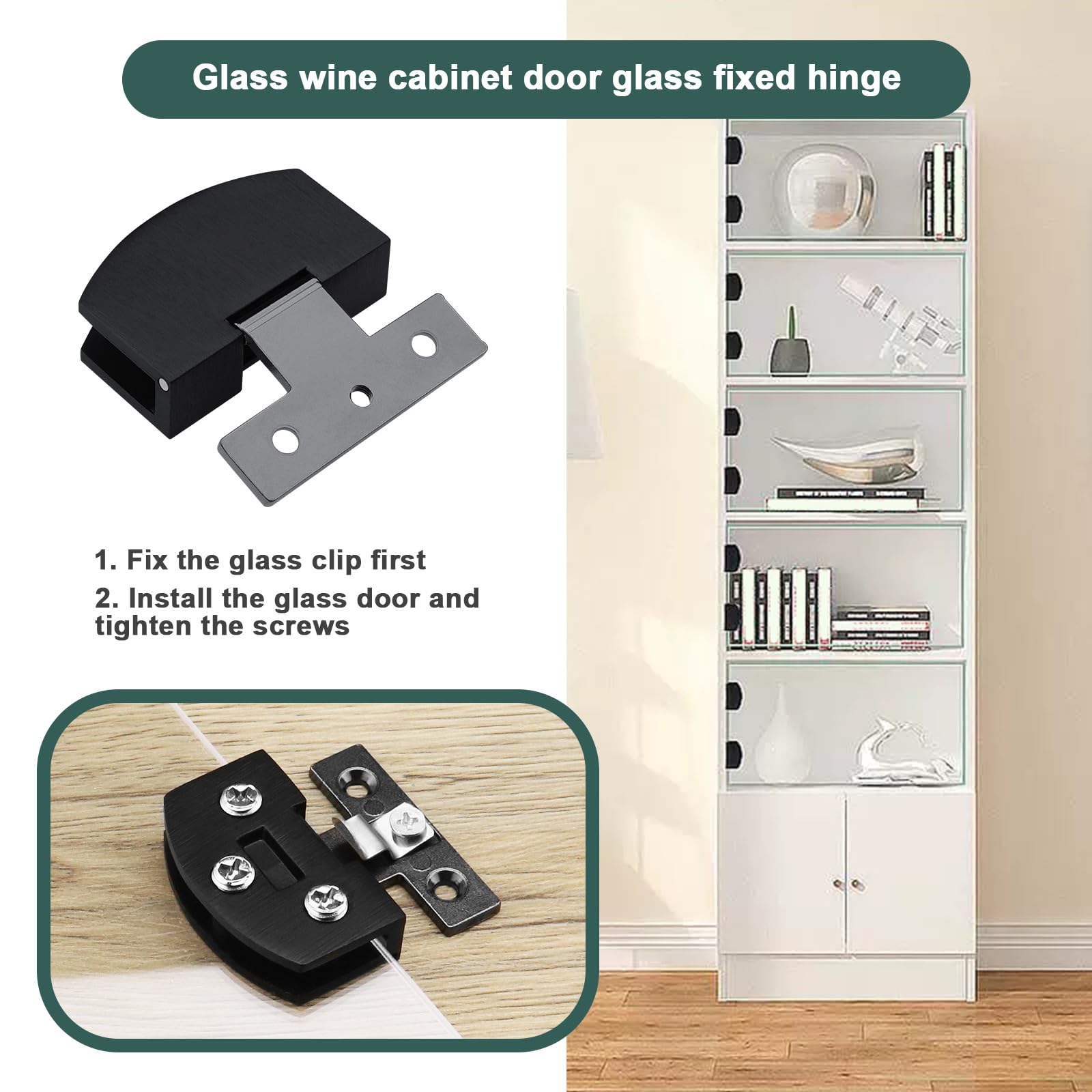 Bords lisses et sûrs : pas de coins tranchants pour garantir une expérience utilisateur sans soucis avec ces charnières en verre. Ils peuvent résister à un usage quotidien et maintenir une performance fiable au fil du temps. Vitrina coleccionista de 4 niveles armario auxiliar con puertas abatibles de acr Installation facile : Vous pouvez fixer la charnière au panneau latéral ou à la porte en verre sans perçage. Chaque porte doit être équipée d’au moins 2 à 3 charnières. Insérez simplement le verre dans la rainure et serrez les vis. Convient aux épaisseurs de verre de 5 à 8 mm Les fentes de positionnement intégrées permettent aux charnières de maintenir le verre en place en toute sécurité à un angle droit., Simplifiez votre installation. Charnières De Porte En Alliage De Zinc, 4 Pièces, Charnières Surface brossée élégante : les charnières disposent d'une élégante finition satinée qui ajoute une touche de sophistication et améliore l'esthétique générale. Design de fente de positionnement sécurisé : convient pour le verre de 3 à 6 mm d'épaisseur. Montrez votre attention aux détails et rehaussez vos meubles. Charnières en verre alliage, charnières à clip de porte en verre 4pcs...