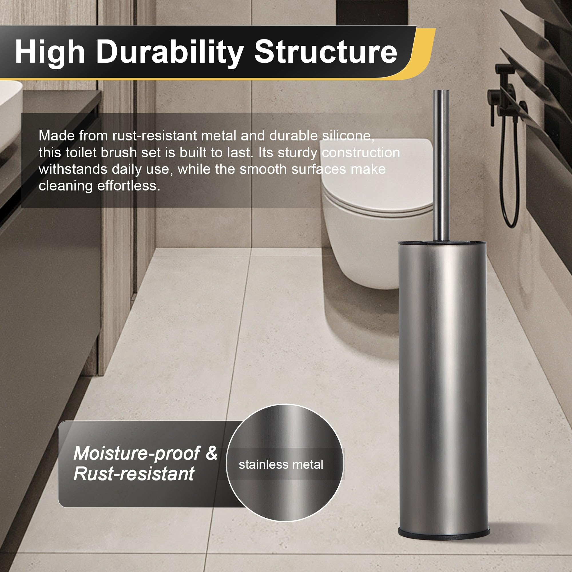 Sa construction solide et ses têtes interchangeables en font un outil essentiel pour chaque foyer. Poignée Longue Ergonomique pour une Utilisation Confortable - La poignée longue et ergonomiquement conçue de nos brosse toilettes wc offre un meilleur reach, facilitant le nettoyage des zones difficiles d'accès sans avoir à se pencher. Pot avec brosse WC intégrée (2 112) Brosse WC (1 083) Tête de brosse WC (323) Pot à brosse WC (91) Pot à balai WC de sol (22) Serviteur WC (22) Balai (7) Dérouleur papier WC (7) Baignoire ronde (6) Pièce détachée pour sanitaire (5) Set d'accessoires de salle de bain (5) Cartouche de gel d'urinoir (4) Porte-manteau sur porte (4) Pelle et balayette (2) Poubelle de salle de bains (2... Ses matériaux garantissent une résistance à l'usure quotidienne, tandis que les surfaces lisses facilitent le nettoyage et l'entretien. Le set comprend deux têtes de brosse , offrant une polyvalence adaptée à divers besoins de nettoyage. Notre brosse wc est idéale pour ceux qui recherchent une combinaison de fonctionnalité et d’esthétique dans leurs accessoires de salle de bain. Son manche ergonomique long offre une portée supplémentaire, facilitant le nettoyage et évitant tout contact avec la saleté, pour une solution hygiénique et confortable. Informations sur la garantie - La brosse toilettes wc Or Brosse DAZI est soigneusement emballée pour garantir qu'elle arrive en parfait état. Avec son design pratique et moderne, ce set de brosse ne se contente pas d’être performant, il améliore également l’esthétique de votre salle de bain, la maintenant propre, bien rangée et élégante. 2 Brosse Toilettes Wc, Brosse Wc Silicone Noir, Aucun Perçage Brosse... Si vous rencontrez des problèmes de qualité lors de la réception du produit, n'hésitez pas à nous contacter et nous résoudrons le problème rapidement. Brosse Toilettes Wc DAZI Métallique Autoportante, Brosse WC Noire Mate Avec 2 Balai Toilette WC Pour Le Nettoyage En Profondeur De Bain, Anti-Goutte Et Anti-Obstruction (Argen Gris Brosse Toilettes Wc Design Fabriqué en métal robuste et durable, ce set de brosse pour toilettes est résistant à la corrosion et conçu pour garantir des performances durables. Il est équipé d’un disque pare-éclaboussures sur le manche, empêchant l’eau et les débris de se disperser et garantissant un nettoyage propre et hygiénique. Cette fonctionnalité innovante empêche l’eau et les débris de rejaillir, gardant vos mains et votre environnement propres tout en assurant un nettoyage en profondeur sans effort. Son manche ergonomique assure une prise en main confortable, rendant chaque séance de nettoyage plus facile et plus efficace. ovimar ROMO Brosse WC dorée en silicone, fonction ventilation, autoportante, tête de brosse WC interchangeable, bac d'égouttement amovible, brosse WC sans montage mural