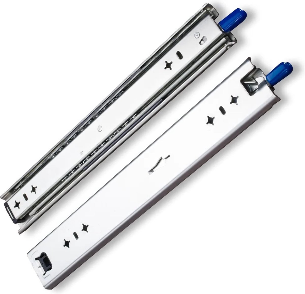 【Facile à Étirer】 500 mm de long. Glissières de tiroir robustes avec verrou – Glissières de Capacité de charge maximale : 68 kg : les glissières sont fabriquées en plaques d'acier laminées à froid de 1,5 mm à haute tension, elles garderont vos tiroirs... Un remplacement fréquent n'est pas nécessaire. 【Robuste et Durable】 Le matériau est en acier laminé à froid, qui est robuste et durable, avec de fortes capacités anti-oxydation et anti-rouille. Profitez pleinement de l'espace des tiroirs. Lorsque le tiroir est ouvert, il peut être retiré en douceur sans faire de bruit. Le tiroir peut être ouvert en appuyant sur le verrou et complètement retiré, ce qui est pratique pour l'organisation et le nettoyage. Conçu avec des roulements à billes. Meilleure capacité de charge. BRASO - Rails coulissants pour ontage au sol - Charge lourde 1200... Glissières De Tiroir Solides AOLISHENG Glissières De Tiroirs Robustes Avec Serrure 500 Mm, Capacité De Charge De 120 Kg, Industrielles à Extension Totale, Glissières De Tablettes à Roulement à Billes, Montage Latéral 1 Paire (50 Coulisse Charge Lourde S'il est placé horizontalement au bas du produit, la capacité de charge sera réduite de moitié.