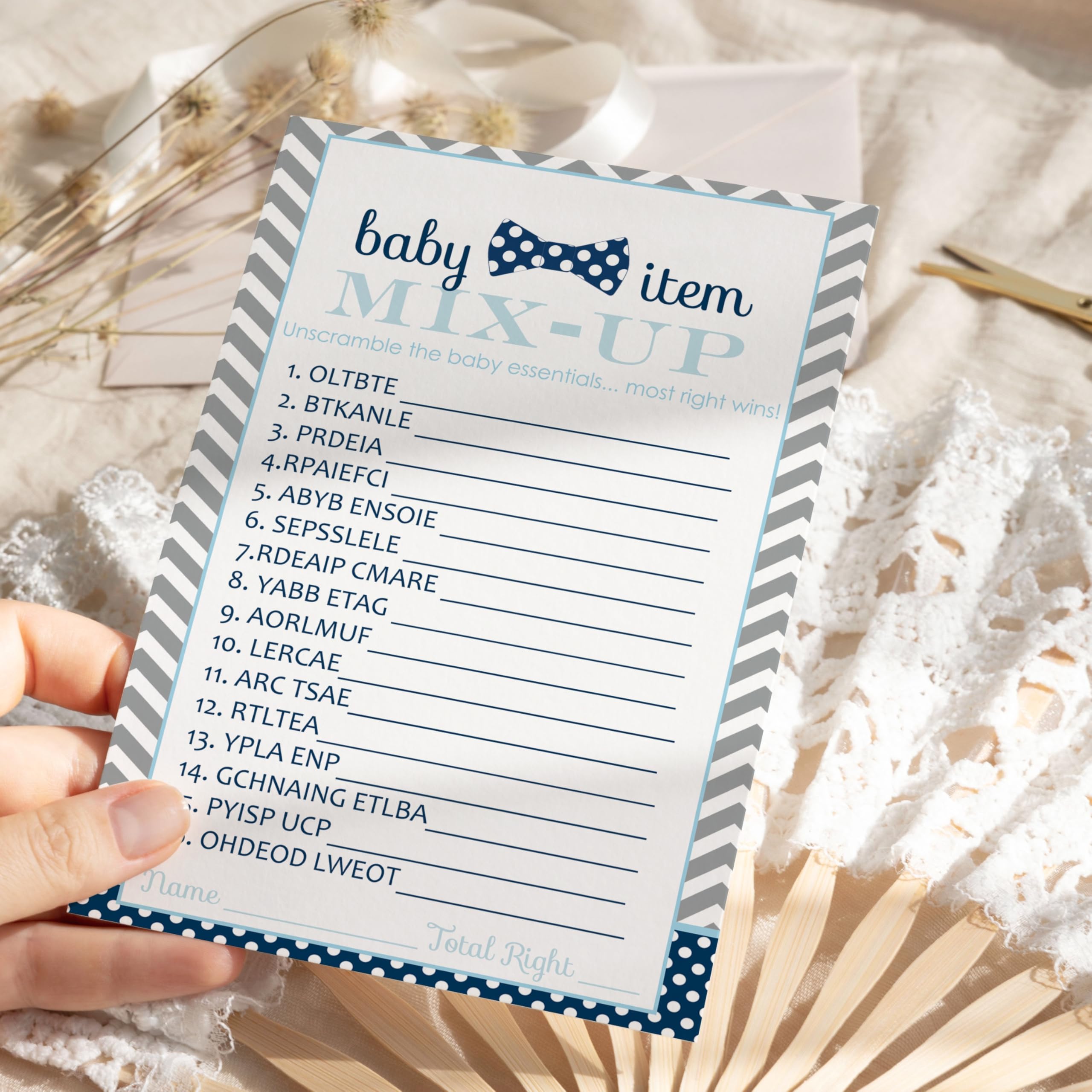 Jeux de fête prénatale pour filles : créez du rire, faites des souvenirs et aidez tout le monde à avoir le meilleur moment avec ce jeu de mots pour bébé. Jeux de fête prénatale pour filles : créez du rire, faites des souvenirs et aidez tout le monde à avoir le meilleur moment avec ce jeu de mots pour bébé. Parfait pour jouer pendant les fêtes de maman et de bébé où vous avez besoin d'un défi amusant pour les groupes de tous âges. Notre lot comprend 4 jeux de fête prénatale différents... Le papier cartonné durable est lisse au toucher et simple pour écrire avec n'importe quel stylo ou crayon en raison de sa finition non revêtue durable. Paper Clever Party Lot De 25 Mots Scramble Pour Fête Prénatale Rose Et Doré Aidez les invités à avoir un bon moment. Contenu : Feuille de réponse incluse pour voir facilement qui gagne le prix du jeu. Design unique pour fête prénatale par Paper Clever Party. 25 cartes de jeu (toutes le même motif). Astuce : utilisez la touche de réponse incluse pour voir qui devinez le plus de réponses correcte pour le prix. Ce jeu de devines unique ajoute du plaisir à la fête des mamans. Par rapport aux autres qui sont des feuilles de papier fragiles ou des impressions brillantes. Paper Clever Party Adventure Begins oy o Daddy – Juego de 25 Avec la touche de réponse incluse, vous pouvez facilement voir quelle personne compte les réponses les plus correctes pour gagner le prix. Style rose et doré : embellissez sa baby shower avec notre design scintillant – Blush, rose et doré – Style élégant et chic – Découvrez et mélangez avec d'autres accessoires pour événements et fêtes de Paper Clever Party. Jeu de mots Pois et étoiles/Jeu de recherche de fête prénatale... Design de qualité : lot de 25 – Jeu de fête prénatale standard 4 x 6 – Premium 120 kg. Amusant à jouer : ravissez vos invités et essayez-les de débrouiller les articles de bébé sur la feuille de jeu. Faites-le vous-même en définissant des limites de temps et des niveaux primaires. Fabriqué aux États-Unis : Baby Shower Games par Paper Clever Party Pink and Gold Word Scramble pour ajouter un peu de plaisir à votre moment de fête préféré.