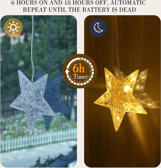 Minuterie : Programme de minuterie (6 heures de marche, 18 heures d’arrêt) Si vous basculez l’interrupteur à l’intérieur de la décoration de Noël étoile en position médiane, la fonction de minuterie s’activera.