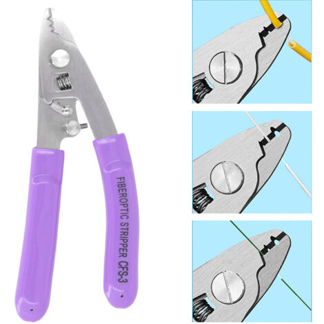 couche de noyaux de fibres de 120 à 250 μm. Liste des paquets : 1 x dénudeur de fibre optique 1 x clé couche de noyaux de fibres de 120 à 250 μm., 2., [Poignée ergonomique] La conception ergonomique de la poignée offre une prise confortable, réduisant la fatigue de la main pendant l'utilisation, garantissant un processus de décapage efficace., 3., [Décapage précis] Les trous de diamètre précis et l'ouverture en forme de V sur la lame permettent un retrait précis des revêtements tampons, garantissant des résultats de décapage propres et en douceur., 4., [Avec clé hexagonale] Ce dénudeur de fibre optique est livré avec une clé hexagonale de 1,5 mm pour un réglage précis, permettant les ajustements nécessaires pour des performances optimales., 5., [Application polyvalente] pour une utilisation dans les réseaux FTTH et à fibre optique industriels, y compris les systèmes FTTX, FTTB et FTTP, ce dénudeur de fibre optique est un outil essentiel pour les professionnels du domaine. Le FO 103 T 250 J réalise toutes les opérations courantes de dénudage de fibres monomodes gainées de 3 mm avec un seul outil compact. Le premier trou permet de retirer la gaine extérieure de 3 mm. Le deuxième trou permet de retirer le tampon de 900 microns du tampon de 250 microns PAR - dénudeur de fil à 3 trous coupe-fil CFS-3 Pince à dénuder... Dénudeur De Fibre Optique FDIT - Coupe-fil Rapide Et Précis Avec [Avec clé hexagonale] Ce dénudeur de fibre optique est livré avec une clé hexagonale de 1,5 mm pour un réglage précis, permettant les ajustements nécessaires pour des performances optimales. Miller Pince Fiber Pince À Dénuder La Sif à Trois ... – Grandado [Décapage précis] Les trous de diamètre précis et l'ouverture en forme de V sur la lame permettent un retrait précis des revêtements tampons, garantissant des résultats de décapage propres et en douceur. Spécification : Type d'article : Dénudeur de fibre optique Matériau : Acier inoxydable Couleur : Bleu Grand trou : Convient pour dénuder la couche protectrice extérieure de la fibre de 2 à 3 mm Trou moyen : Pour dénuder la couche protectrice blanche douce de noyaux de fibres de 250 à 900 μm Petit trou : pour décaper la couche de revêtement de noyaux de fibres de 120 à 250 μm Comment utiliser : Utiliser directement. [Poignée ergonomique] La conception ergonomique de la poignée offre une prise confortable, réduisant la fatigue de la main pendant l'utilisation, garantissant un processus de décapage efficace.