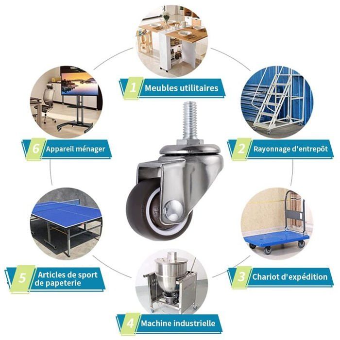 Dimensions : diamètre des roues de table : 25 mm. Caractéristiques : Roulettes et roues durables et résistantes à l'usure. VEVOR Roulettes Pivotantes Lot de 4 Roulettes pour Meubles Industrielles 152,4 mm Roues Peut fonctionner en douceur sur le parquet, la moquette, le carrelage en céramique et d'autres sols sans couiner. Diamètre des roues de table : 25 mm. Largement utilisé : convient pour les familles, les centres commerciaux, les écoles, les hôpitaux et d'autres endroits. Caractéristiques : Matériau : polypropylène de haute qualité et acier dur. Convient pour les boîtes de vol, les chariots, les boîtes à outils, les meubles, les chariots, etc Les dessous de meubles ne rayeront pas le sol et ne laissent pas de traces, ce qui protège votre plancher en bois Facile à installer et facile à utiliser : avec la vis d'installation, il ne faut que peu de temps pour terminer l'installation Ouverture de montage : 4 mm., Charge maximale : 10 kg. Roulette Roue En Ligne Pack 5 Roulettes En Caoutchouc De Remplacement Pour Chaises De Bureau Noires Et Transparentes 11 X 22 Mm Lifelong | Leroy Merlin Roulettes Pour Meubles De Rangement VEVOR Roulettes Pivotantes Lot de 4 Roulettes pour Meubles Industrielles 76,2 mm Roues... Contenu : lot de 8 mini roulettes universelles à plaque fixe Taille de la plaque de montage : 106,7 cm × 19 mm., Hauteur totale : 2,8 mm.