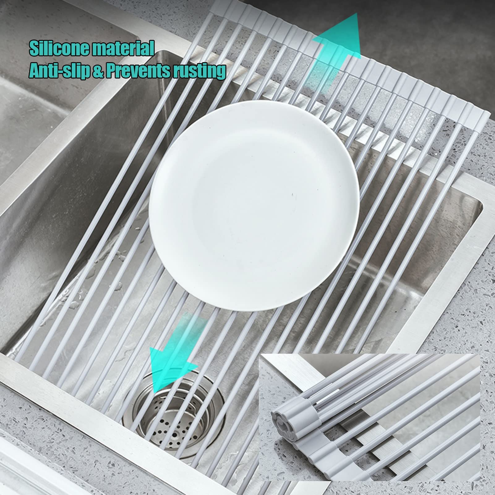 Cet égouttoir enroulable pour évier est antidérapant, antirouille, résistant aux températures élevées, et ne rayera pas les articles placés dessus pour le séchage. Que vous fassiez la vaisselle, rincez les fruits et légumes, ou séchez les ustensiles de cuisine à l'air libre, cette étagère adaptable répondra à vos besoins. Multifonction : l'égouttoir pour évier est en acier inoxydable, qui est très solide, stable, sans rouille, résistant à la corrosion, antidérapant et résistant à la chaleur Excellent service client : afin de fournir un excellent service client, nous nous engageons à vous fournir la meilleure expérience d'achat. Commandez votre égouttoir d'évier de cuisine GDJIAYIYI dès aujourd'hui et profitez d'une cuisine plus propre et plus organisée C'est un choix haut de gamme parmi les égouttoirs à vaisselle. L'égouttoir d'évier a une taille rétractable et réglable pour les éviers simples, les éviers doubles, les éviers de camping-car et le camping, que vous fassiez la vaisselle, rincez les fruits et légumes ou les ustensiles de cuisine à l'air libre, cet égouttoir à vaisselle pour évier a ce qu'il vous faut, et c'est un incontournable pour le rangement de la cuisine. Si vous rencontrez des problèmes ou avez besoin d'aide lors de l'achat de notre égouttoir pour évier, n'hésitez pas à nous contacter, nous répondrons à votre demande dans les plus brefs délais et vous fournirons une solution satisfaisante. Égouttoir entièrement recouvert de silicone de qualité alimentaire : l'égouttoir extensible est entièrement recouvert de silicone de qualité alimentaire, présentant une texture de haute qualité et une qualité durable. Pucio Égouttoir À Vaisselle Égouttoir À Vaisselle Enroulable Égouttoir... Merci de l'intérêt que vous portez à nos produits de soutien. égouttoir Vaisselle Action Cycleacc Égouttoir à Vaisselle Enroulable De 33 à 61 Cm, Extensible Au- Dessus De L'évier, Grand égouttoir à Vaisselle Pliable En Acier Inoxydable, Organiseur De Cuisine Pliable Au-dessus De L'évier Egouttoir Vaisselle Moderne Notre égouttoir à couverts s'étend jusqu'à une largeur maximale de 57 cm et une longueur fixe de 35 cm. Notre égouttoir à vaisselle est fabriqué en silicone pour un meilleur drainage, permettant à l'eau de s'écouler directement dans l'évier, empêchant la croissance de moisissures et prolongeant la durée de vie de l'égouttoir Le design antidérapant maintient les couverts, les légumes et les fruits en sécurité et réduit le risque d'accident. Accessoires pour évier, essentiels de cuisine : notre égouttoir à vaisselle extensible en silicone GDJIAYIYI s'adapte à une variété d'éviers de cuisine. Égouttoir à vaisselle extensible : le design extensible et réglable permet de s'adapter à plus d'éviers de tailles différentes, et si vous avez un double évier, il peut être rétréci ou étendu pour s'adapter à l'un ou l'autre évier. Égouttoir à vaisselle Séchoir à vaisselle et égouttoir, 2 niveaux
