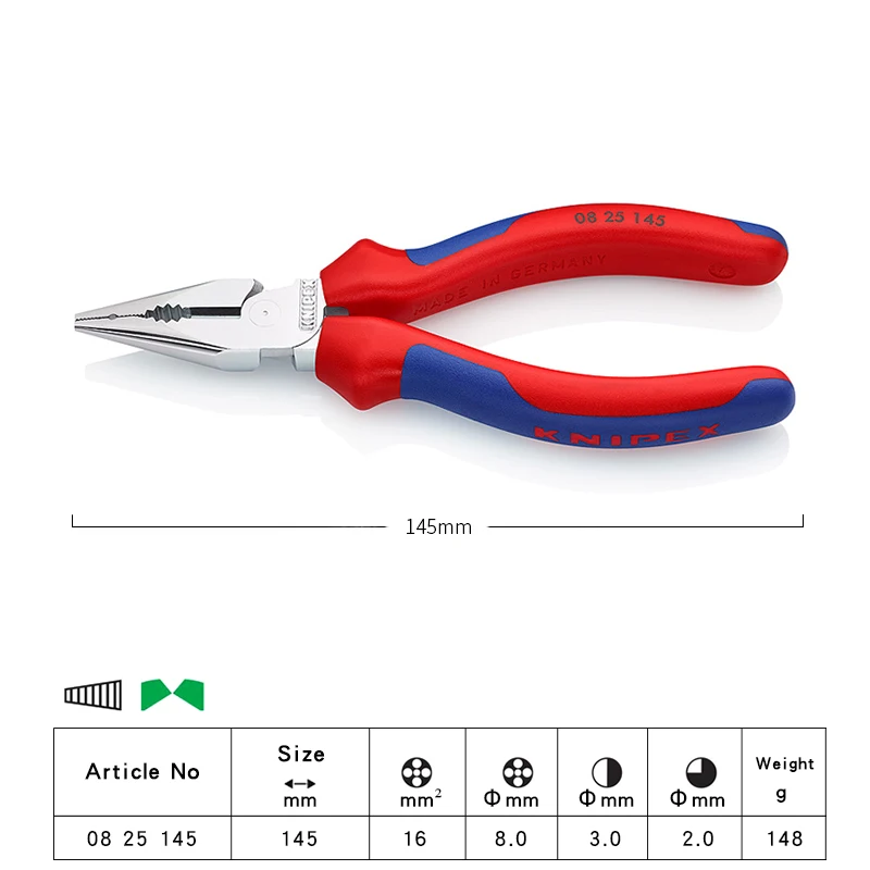 Relay adjusting pliers plier style : Straight Jaw overall length : 145 mm product range :-SVHC : No SVHC (15-jun-2015) Jaw Length : 40 mm 78 61 125 Pince étau Avec Mâchoire Demi-ronde 35 11 115 Système double ressort pour une ouverture douce et homogène. KNIPEX 35 41 115 - 89568 Pince spéciale électronique, tête polie... Section 3 : Règles de la description anatomique – Anatomie humaine Pince de préhension - Becs demi-ronds lisses - 145mm - Gainage bi-matière - Polie miroir - Charnière de précision entrepassée - Intérieur des mâchoires lisse - Arêtes soigneusement ébarbées - Double ressort à frottement réduit<BR<BR<bLes Atouts de l'ar Description Pinces de précision pour travaux de montage de précision, par exemple dans l'électronique ou dans la mécanique de précision. Pour saisir, tenir et plier. Charnière entrepassée de précision Surfaces de prises lisses. Arêtes soigneusement ébarbées Acier à outils spécial, forgé, trempée de haute qualité. Avec embouts ronds de moitié.