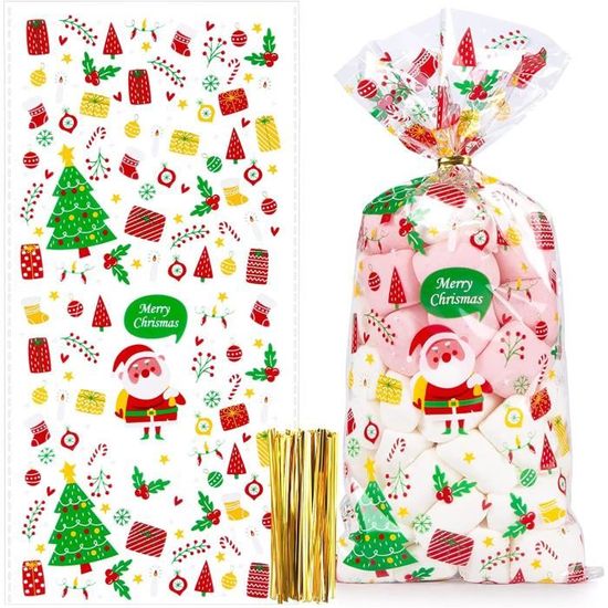 Sachet Biscuit Noel 50Pcs Sachet De Biscuit Bonbon De Noel Durable E Transparent Sachet Bonbon Ces sacs en cellophane de Noël en plastique de qualité alimentaire sont sûrs, solides et durables. Spécifications : Styles : Flocon de neige / Père noël Matériau : plastique OPP de qualité alimentaire Taille : Sacs de Cadeau Noel : 27 cm x 13 cm / 10,6 inch x 5,1 inch Cravates Torsadées : 8cm / 3., 15 inch Le forfait comprend : 50/100 x Sacs Cellophane de Noël 100/200 x Cravates Torsadées 100 Pièces Sachet Biscuit Noel, Sachet Bonbon Sachet Bonbon de Noël pour Les Aliments,60 Pcs Sachet Transparent de... mais veuillez ne pas les placer au four ou au micro-ondes. doit être la meilleure façon de décorer des cadeaux pour la famille et les amis. 🧁Applications Étendues - Ces cadeaux transparents de noël sont parfaits pour les fournitures de fête du nouvel an et de noël. 🍭Sûr et Durable - Les sachet biscuit noel sont fabriqués à partir de plastique opp de qualité alimentaire, non toxique et sans odeur. 🍬Renforcement des Coutures - Par rapport aux sachet plastique transparent ordinaires, les sachets de bonbons en plastique Noel que nous avons lancés cette fois sont renforcées et ne se cassent pas facilement. 50 Pcs Sachet pour Biscuit Bonbon de Noel Durable e Transparent, Sachet de Alimentaire en Cellophane pour Biscuits avec 100pcs Cravates Torsadées Les sachet biscuit de Noël conviennent au remplissage de biscuits, chocolats et jouets, etc.