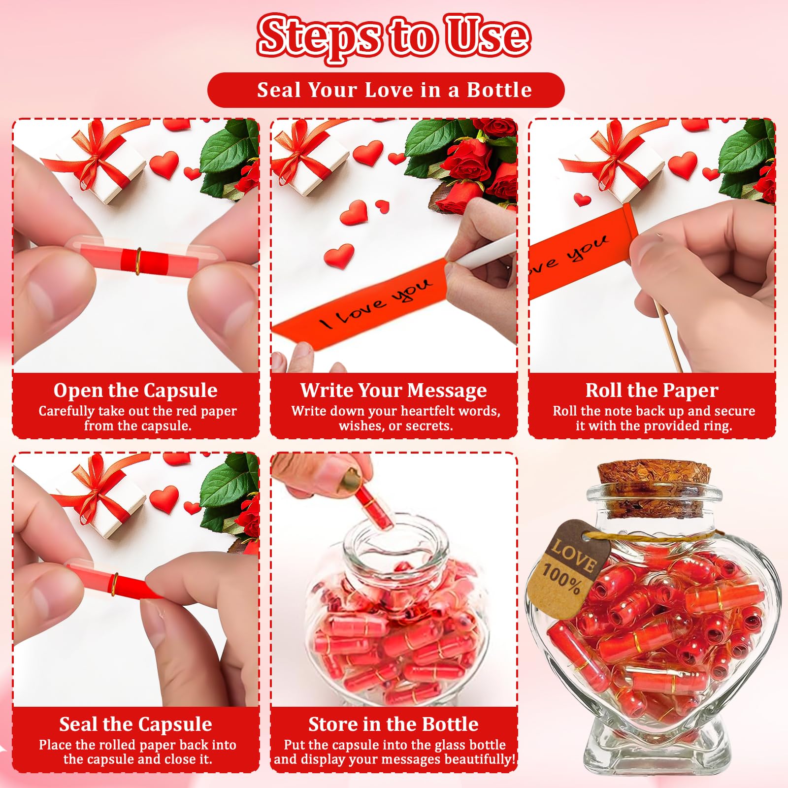 Cadeau pour lui et elle : messages de pilules d'amour mignons et fantaisistes en forme de bouteille, très élégant et créatif comme cadeau de jour commémoratif, cadeau de fête des mères, cadeau de fête des pères, cadeau d'anniversaire, cadeau de Saint-Valentin, cadeau de Noël ou cadeau d'anniversaire, cadeau de remise de diplôme, c'est un excellent cadeau pour meilleure amie, camarades de classe, petite amie, petit ami, maman, papa, épouse, mari, couples. Dimensions du papier : environ 5,8 x 1,7 cm. Idee Cadeau Copine Lot De 110 Capsules Vierges Avec Message D'amour Dans Une Bouteille, Cadeau Pour Femme, Petite Amie, Mari, Petit Ami, Anniversaire, Noël Boite A Mots Doux A Remplir Message de capsule dans la bouteille : chaque bouteille à souhaits en forme de cœur avec un bouchon en liège dispose de 50 notes de capsule, les pilules d'amour sont mélangées de couleurs aléatoires. Sur le papier, vous pouvez écrire tout ce que vous voulez dire et l'utiliser pour montrer votre amour et votre attention à lui/elle. Voici les 21 meilleures positions sexuelles pour hurler de plaisir (et Écrivez ce que vous aimez : il y a un morceau de papier à vœux vierge à l'intérieur de la pilule. Illustration à propos Signe et symbole d Notre bouteille en forme de cœur est fabriquée en verre de qualité, peut être utilisée comme cadeau pour un être cher ou stocker comme souvenir pendant une longue période. Exemple de mots d'amour : 1., Love you to the moon and back., 2., Sans votre amour doux, quelle vie pourrait être ? 3., Vous ne pouvez pas vous empêcher de tomber amoureux., 4., Aimez-moi peu et aimez-moi longtemps., 5., La langue de l'amour est dans les yeux., 6., I felicitate the day I found you. Les petites pilules d'amour sont pleines de sentiments profonds sans fin. Cette bouteille en verre en forme de cœur contient 50 capsules rouges avec des papiers vierges pour y glisser vos messages d'amour. Chaque capsule s'ouvre et se... Toute l'inspiration mode et les dernières tendances sont en ligne sur SHEIN. Taille et matériau : cette bouteille romantique mesure environ 8 x 6 cm. Pilules à message secret : un petit secret dans chaque capsule d'amour, enregistrez votre vie et vos aspirations, heureux ou inquiets, manquants et attentionnés, votre amour et votre vie.