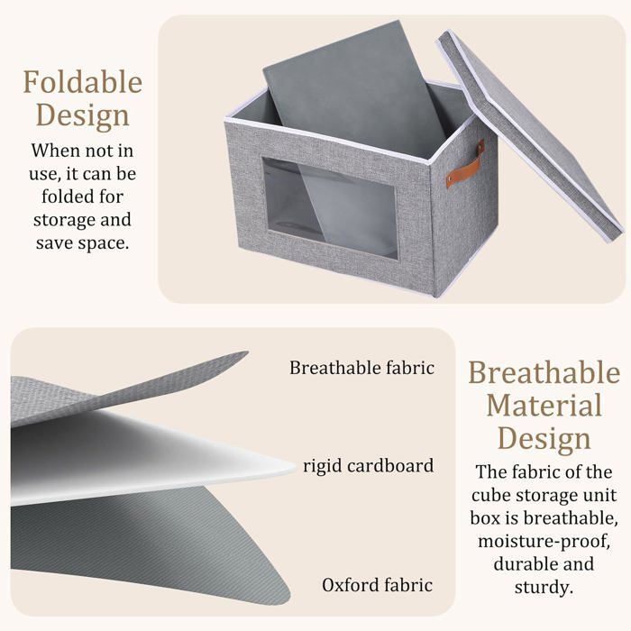 Si vous avez d'autres questions sur ces boîtes de rangement, veuillez contacter notre service client amical Vous jetez toujours des affaires partout dans votre maison ? Vous ne parvenez souvent pas à trouver des articles importants à des moments critiques ? La réponse est : peut-être avez-vous besoin d'un bac de rangement pliable., Avantage : 1., Contrôlez votre encombrement, obtenez une poignée de rangement sur les produits et faites tout avec le style. 8PCS Caisses Plastique Pliable, 4 Grand Paniers Pliable et 4 Petit... Ces mini paniers de rangement non tissés à double poignée pliables se plient facilement afin qu'ils puissent être rangés rapidement., 2., Les paniers sont parfaits pour un rangement supplémentaire dans n'importe quel foyer. Ce lot de cubes de rangement pliables en tissu est fabriqué en tissu non tissé, ce qui signifie qu'il est facile à nettoyer et à essuyer quand vous le souhaitez., 4., Il est adapté pour la maison, les étagères, les placards, les armoires, la crèche, la chambre d'enfant, la chambre de bébé, la salle de bain, la chambre, le salon, la buanderie, la cuisine, le bureau, l'école, la salle de classe, les voitures et l'extérieur., 5., Convient également pour les vêtements, les vêtements de bébé, les couches, les sous-vêtements, les jouets, les jouets pour enfants, les jouets pour animaux domestiques, les jouets, les serviettes, les draps, les livres, les magazines, les DVD, les couvertures et les télécommandes de télévision. Ils conviennent bien dans le bureau, le salon, la chambre, le couloir, la salle de bain et ainsi de suite. Gardez-le dans la chambre d'enfant, la salle familiale ou n'importe quelle pièce de la maison qui pourrait utiliser un espace de rangement supplémentaire : s'adapte sur une étagère de placard, une bibliothèque ou un bureau. Boîte de Rangement Pliable Premium 15x31cm Pétrole Se replie à plat pour un rangement facile lorsqu'il n'est pas utilisé. Construction renforcée : le tissu en polyester épais avec du carton épais et rigide à l'intérieur et la poignée cousue et joliment faite rendent ces magnifiques bacs de rangement robustes, durables pour un usage quotidien, leur permettant de tenir debout tout seul lorsqu'ils ne sont pas entièrement remplis, et faciles à transporter. - Matériau : tissu non tissé, carton., - Poids : 0,5 kg. Cube De Rangement Tissu Boîte De Rangement Pliable En Forme De Cube De 27,9 Cm Avec Boite Rangement Pliant OUSFOT Lot de 6 Cubes de Rangeent Pliables en Tissu ulticolores Boîte... Poignées pour un accès facile : poignée avant pratique pour glisser ou sortir facilement. Paramètres du produit : - Dimensions des boîtes avec couvercle : 38 x 25 x 25 cm.