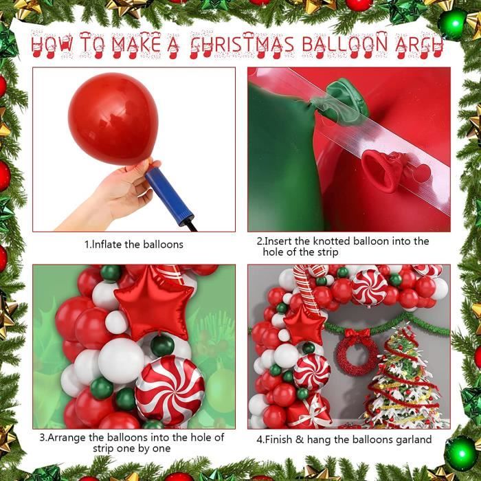 Décorations de Noël parfaites pour l'extérieur Décoration polyvalente : convient non seulement pour construire une superbe arche de ballons de Noël, nos ballons de Noël peuvent également être utilisés pour décorer votre salle de fête de différentes façons. de ballons (5 pièces de 30,5 cm + 12 pièces de 25,4 cm + 15 pièces de 12,7 cm), 30 ballons argentés métalliques (5 pièces de 30,5 cm + 10 pièces de 25,4 cm + 15 pièces de 12,7 cm), 4 ballons bonbons de 45,7 cm, 16 ballons Starburst de 45,7 cm, 5 longs slim. KIT ARCHE A BALLONS TERRACOTTA - Ouest Fetes DBKL Kit d'arche de ballons de Noël 182 pièces avec ballons de Noël rouge, vert, argent et nude pêche, ballons en aluminium bonbon, ballons en forme d'étoile... Ballon Noel s De Noël, Boîte Rouge Vert Or, Ballons à Bonbons, Guirlande Conique Explosion étoile, Ballons En Aluminium, Décor De Fête Du Nouvel An Arche De Ballon Contenu de l'emballage : 33 ballons rouges (1 pièce de 45,7 cm + 10 pièces de 30,5 cm + 12 pièces de 25,4 cm + 10 pièces de 12,7 cm), 60 ballons verts (1 pièce de 45,7 cm + 10 pièces de 30,5 cm + 22 pièces de 25,4 cm + 27 pièces de 12,7 cm), 3 2 pièces pêche nue. Kit Arche Ballons Noël - Flocons et argent Accrochez-les au plafond, dispersez-les sur le sol, ou créez des bouquets de ballons uniques pour ajouter du charme à vos décorations de Noël Ils sont conçus pour résister à l'épreuve du temps et rester en forme pendant vos fêtes de fin d'année Largement applicable : que vous organisiez une petite réunion de famille, un anniversaire, un anniversaire de mariage ou une grande fête de Noël, ces ballons de Noël sont le choix parfait.