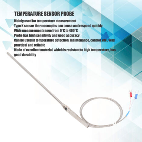 et est directement en avec l'objet mesuré Lorsqu'il y a une différence de température entre les deux points de fixation 1 et 2 des conducteurs A et B, la situation de génération d'une force électromotrice et de formation d'un courant dans la boucle est appelée effet thermoélectrique. 【HAUTE PRÉCISION】 Le capteur de température de type K La sonde de température est en acier inoxydable, la conduction de température est plus rapide, la mesure est plus sensible et la précision du travail peut être Eosnow Thermocouple de Type K, sonde de 200mm, vitesse de réponse Description du produit Oumefar Thermocouple de type K capteur de température de ligne de mesure de température en Silicone de haute précision 0-200 ? 4 × 30 mm(2meter) Lorsqu'il y a une différence de température, une force électromotrice est générée dans la boucle et un courant se forme Le thermocouple de type K haute température produit par Wepower Electronic convient aux environnements à haute température et haute pression dans les industries chimiques et pétrolières. 2 x 7 x 0,2 mm/0,08 x 0,28 x 0,01 pouces 【SPÉCIFICATIONS】 Type d'élément: Thermocouple de type K, plage de mesure de la température: 0-200 ℃ Matériau de la sonde: acier inoxydable, spécification de la sonde: env. 【PRINCIPE DE MESURE】 Le thermocouple connectera les conducteurs A et B de différents matériaux pour former une boucle fermée. 【EXCELLENTE PERFORMANCE】 Le fil du thermocouple est enveloppé de gel de silice souple de et enveloppé d'une ligne de mesure de température de premier niveau, qui présente les avantages d'une mesure de température précise, anti-interférence, petite erreur et longue durée de vie Sonde Thermocouple Type K Thermocouple De Type K 0-800 ℃, Capteur De Température De 2 Mètres De Long, Sonde De Mesure De La Température Pour Le Contrôle PID Thermocouple Type K Avis Sonde thermocouple Type K, chemisée et isolée, avec connecteur mâle standard pour la mesure de température de -200°C à 1200°C : · Sonde Type : K · Type de... pour réaliser une mesure de température et un direct avec l'objet mesuré Liste des packages: