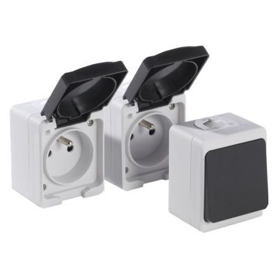 Prise Etanche Et Interrupteur Va Et Vient Ip55 Plexo Prise 2P T 16A-250V Avec Volet