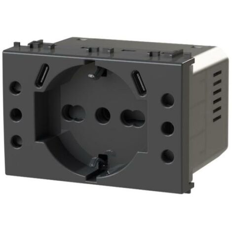 Prise universelle adaptée toutes fiches standard européennes avec 2 pôles et 3 pôles Compatible fiche type C , Type E,Type F, Standard CEE 7/16 (Eurospina) ,CEE 7/17, CEE 7/4, CEE 7/7 Compatible fiche de type L, italienne 3 pos, Standard CEI 23-50 S10 S11 S16 S17 La prise schuko à deux broches Master Mix est conçue pour des applications nécessitant un courant nominal de 10/16 A. Elle est idéale pour alimenter des appareils à forte consommation tels que les machines à laver, les fours, les aspirateurs, les déshumidificateurs et les fers à repasser Prise Schuko 2P T Couleur Noir ou Blanc 16 A 250 V · Compatible avec Bticino Living Light · Prise universelle adaptée toutes fiches standard européennes avec 2... Presa Schuko Bipasso Bticino Living Light 2p T 10 / 16 A 230 V Bianco Bticino Living Now Prise Double 10/16 A, Blanc