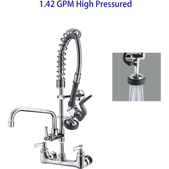 Pulvérisateur d'évier commercial, pulvérisateur de restaurant, pulvérisateur de lave-vaisselle pré-rinçage, tête de pulvérisation commerciale haute pression de 1,42 GPM, buse de pulvérisateur de vaisselle avec poignée ergonomique qui s'adapte à la plupart des robinets d'évier de cuisine commerciaux Il peut libérer vos mains si vous avez besoin d'utiliser ce pulvérisateur de pré-rinçage pendant une longue période. Buse de pulvérisation à vaisselle : le pulvérisateur dispose de buses en caoutchouc qui évitent l'accumulation d'eau dure et de calcaire, et il est facile à nettoyer et à entretenir. évier Commercial Pré-rinçage Avec Poignée Ergonomique 1,42 GPM Lun des nombreux articles disponibles dans notre rayon {1} ici chez Fruugo ! Construit en laiton massif pour plus de durabilité et de fiabilité. -Fini en chrome poli de haute qualité, résistant à la corrosion. - Dispose d'un bec de pré... Il est largement utilisé pour les hôtels, les restaurants, les cafés et les cuisines commerciales robustes. Kit De Remplacement De Tuyau De Pré-Rinçage Pour Pulvérisateur De... Taille de la valve de pulvérisation pré-rinçage : le filetage d'extrémité de la poignée est un filetage mâle de 2,2 cm à 20UNEF, le filetage de la valve de pulvérisation est de 1,9 cm à filetage mâle 14UNEF. La haute pression facilite votre tâche de nettoyage. Vanne de pulvérisation de pré-rinçage commerciale de 1,42 GPM haute pression pour robinet de cuisine commerciale (chrome poli) – Noir