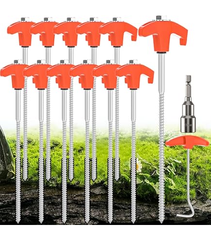 Avantages : Matériaux durables. Lot de 10 piquets de tente en acier rotatifs avec filetage 24X Piquets De Tente En Acier - Piquets De Sol Robustes Avec Filetage... Contenu de la livraison : vous recevrez 10 piquets de tente rotatifs de 8 x 250 mm avec filetage, 10 capuchons à vis, 1 embout de tournevis et 1 extracteur de clous, suffisamment d'outils pour insérer facilement les piquets de tente rotatifs avec filetage dans le sol, utiliser une visseuse sans fil pour visser et dévisser Dimensions : 8 x 250 mm Matériau : acier au carbone M8 Couleur : orange Emplacements applicables : convient pour connecter des tentes, des pavillons, des auvents, des écrans d'intimité, des accessoires de pêche et d'autres équipements de plein air, s'adapter à différents types de terrains, de l'herbe molle au sol dur en passant par le gravier. Nos piquets de tente rotatifs avec filetage sont fabriqués en acier au carbone M8 de haute qualité, stable et durable, ne se plie pas et ne rouille pas facilement, a une durée de vie extrêmement longue et est équipé de vis pour s'assurer qu'ils sont fermement enracinés sur différentes surfaces., Faciles à installer. Caractéristiques : Nom du produit : piquets de tente rotatifs avec filetage. Matériau durable : nos piquets de tente rotatifs filetés sont fabriqués en acier au carbone M8 de haute qualité, stable et durable, pas facile à plier et à rouiller, a une durée de vie extrêmement longue et est équipé de vis pour s'assurer qu'ils sont solidement ancrés à différents endroits sur les surfaces Ces clous en acier filetés sont livrés avec une perceuse pour fixer votre tente instantanément et en toute sécurité, et vous pouvez les enfoncer rapidement dans n'importe quel sol avec une perceuse sans fil ou une visseuse à percussion. Contenu de la livraison : 10 piquets de tente rotatifs avec filetage., 10 cache-vis., 1 étui., 1 extracteur d'agrafes. Ces piquets en lot de 25 se laissent facilement ancrer dans le sol et assurent une bonne stabilité. Ainsi, les tentes et autres auvents résistent au vent grâce... Fixation Pour Tente De Camping Lot De 10 Piquets De Tente Rotatifs Avec Filetage, Sardines Piquets Pour Tente De Camping Vous pouvez les enfoncer rapidement dans le sol avec une perceuse sans fil ou une visseuse à percussion dans l'herbe, le sol dur, le gravier ou toute autre surface
