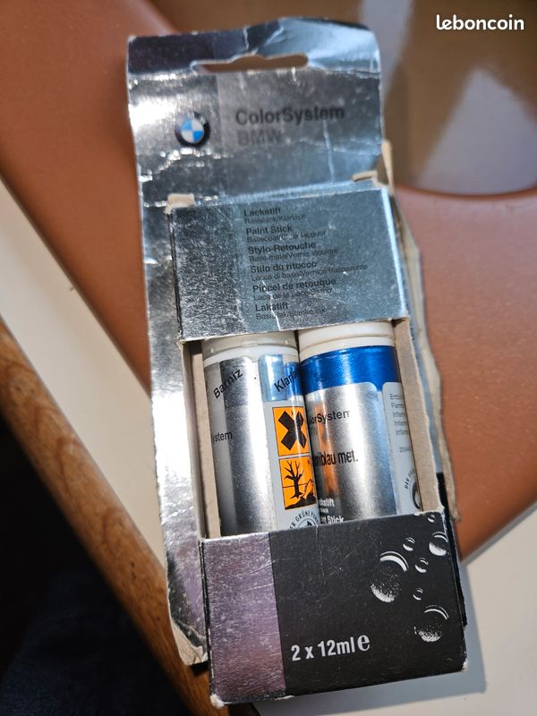 Peinture Voiture Bombe Aérosol Pour BMW B45 Estorilblau II Metallic De Base Acheter en ligne votre Kit Stylo Retouche Peinture BMW C31 PORTIMAO BLAU MET pour 2-Series Cabrio Idéal pour faire disparaitre les rayures ou éclats de peinture sur la carrosserie de votre voiture. Stylo retouche peinture BMW B45 ESTORIL BLUE MET. Ce stylo retouche pour BMW est équipé d'un pinceau fin pour atténuer facilement les rayures et éclats de peinture présentes sur votre voiture. Après séchage complet de la peinture, Utilisez le stylo retouche vernis pour protéger durablement votre carrosserie Code Couleur : ESTORIL bleu vernis II métallisé (45) Contenu : 1 x Vernis (12ml), 1 vernis à ongles transparent (12ml) Remarque : Le code, vous trouverez sur la plaque signalétique de votre véhicule Grâce à ce set de stylos de retouche BMW d'origine (1 x 12 ml Crayon retoucheur estoril-blau mét. - 1 x 12 ml Klarlack, Farbcode: B45), les petits dommages... Pare Choc Arrière BMW F32 F33 Code Couleur BLEU ESTORIL 2 METALLIC (B45 BMW stylos-retouche bi-couche avec ce BMW stylos-retouche se rangent les petites rayures et les petits dommages vernis rapidement et sans problèmes réparer. Le pinceau pour application est intégré dans le couvercle.