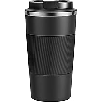 Tasse de voyage, tasse à café isotherme réutilisable avec couvercle anti-fuite et poignée, double paroi sous vide en acier inoxydable pour eau chaude et froide, café et thé, 500 ml (noir La tasse dispose d'un couvercle anti-déversement avec un joint sécurisé, ce qui la rend parfaite pour une utilisation en déplacement, que vous soyez en déplacement, en randonnée ou simplement pour vous détendre à la maison. La tasse à café isotherme à double paroi garantit que les températures sont maintenues et vous permet de profiter de délicieuses boissons à tout moment. Le fond en caoutchouc aide à empêcher la tasse à café de glisser et de basculer. 400Ml Tasse À Café Isotherme Avec Couvercle Étanche U2013 Tasse À Café Acier inoxydable de haute qualité : tasse isotherme en acier inoxydable de qualité alimentaire, cette tasse à café est durable, résistante à la rouille et exempte de toute odeur particulière. Ergonomique et portable : avec une prise en main confortable et antidérapante et un design léger, cette tasse à café est facile à transporter et à utiliser. Le design élégant à double paroi améliore non seulement l'isolation, mais fournit également une construction robuste et durable, parfaite pour un usage quotidien. Remarque : veuillez régler l'anneau d'étanchéité en silicone et le couvercle à vis pour éviter les fuites. Design étanche et anti-déversement : cette tasse à café est dotée d'un couvercle à vis étanche avec un anneau d'étanchéité en silicone, assurant une fermeture hermétique et sécurisée. Tasse À Café Isotherme Avec Couvercle, 380Ml Mug Café À Emporter... Son design ergonomique tient confortablement dans votre main et la plupart des porte-gobelets de voiture, tandis que la construction en acier inoxydable est à la fois résistante à la rouille et facile à nettoyer.