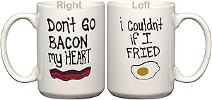 Emballé en Fort Boite pour Ultimate Protection , Finition Ultra Brillante - Emballé en Fort Boite pour Ultimate Protection - Finition Ultra Brillante The set includes one mug with the phrase Dont Go Bacon My Heart and another mug with the phrase I Couldn't If I Fried. Both mugs feature a playful bacon and... Don't Go Bacon My Heart, Couldn't If I Fried – Lot De 2 Tasses Lot de 2 tasses « Don't Go Bacon My Heart, Could't If I Fried Le Parfait Cadeau pour Envoyer un Message , Lavable au lave-vaisselle.