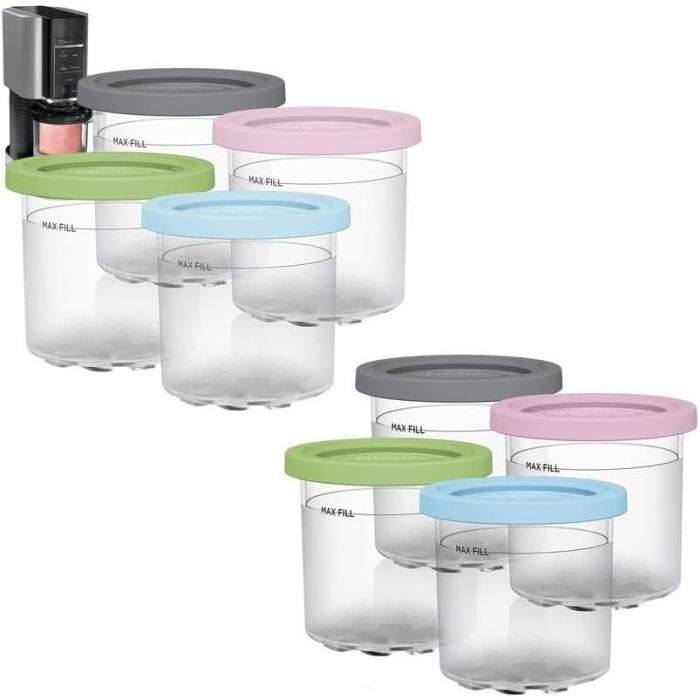 Gardez une crème glacée saine à portée de main. Vous pouvez fabriquer et conserver des glaces, des sorbets, des glaces à base de jus et des milkshakes dans ces contenants et déguster des mets maison de différents goûts à tout moment 🍨【Accessoires pour Machine à Glace】L'ensemble de Bacs à Crème Glacée comprend 4 contenants à crème avec couvercles de différentes couleurs et 4 cuillères, pe Remarque : ne pas dépasser la ligne de capacité maximale lors de la fabrication de crème glacée. Il peut résister à une plage de température de -30 °C à 150 °C et est robuste, durable et réutilisable. Que vous recherchiez une alimentation saine ou que vous exploriez des desserts créatifs, les pintes de crème et les couvercles pour Ninja sont une question de goût et de plaisir., Pourquoi le choisir ? 1., Sans fardeau pour la santé : les récipients à crème glacée pour Ninja sont fabriqués en matériau de qualité alimentaire, sans ajout chimique, adaptés pour la fabrication de faible teneur en sucre, sans produits laitiers ou végétaliens, pour répondre aux besoins de santé des familles modernes., 2., Efficace et peu encombrant : design compact du réservoir, un seul espace du réfrigérateur peut être congelé, dites adieu au fonctionnement fastidieux de la machine à crème glacée traditionnelle., 3., Amusant pour toute la famille : la configuration à double seau permet aux adultes et aux enfants de choisir leurs propres saveurs, ce qui rend l'interaction parent-enfant plus amusante. Matériau de qualité alimentaire, sûr et sain : ce récipient à crème glacée crémeuse pour Ninja est fabriqué en matériau durable sans BPA, peut entrer en contact direct avec les ingrédients, répondre aux besoins de santé de la famille, tranquillité d'esprit pour faire peu de sucre ou sans crème glacée ajoutée. Convient pour plusieurs scénarios, convient pour toutes les saisons : le tourbillon de crème Aoiutrn doux pour Ninja soutient la production de gelato, sorbet, milkshake, smoothies et autres types de desserts, toutes les saisons peuvent profiter d'un délicieux et sain. Ajustement précis, performance sans soucis : les pintes et couvercles Aoiutrn sont conçus pour les machines à crème glacée Ninja NC500/NC500C et NC501/NC501C pour garantir une installation transparente et un fonctionnement efficace, compatibilité parfaite avec les fonctions d'origine. Double capacité, créativité illimitée : les accessoires de machine Aoiutrn de 680,4 g pour Ninja avec 4 pintes, 4 couvercles, 4 cuillères et 1 cuillère en métal, peuvent congeler quatre saveurs en même temps ou production par lots, pour répondre aux besoins de toute la famille à partager, déverrouiller une collocation plus créative. Swirl Lot De 4 Pintes Et Couvercles Pour Crème Glacée Ninja, Pour Pot Ninja Creamy Lot de 2 récipients à crèes et couvercles pour achine à crèe glacée... YHANEC Für Ninja Creami Deluxe Behälter, NC501 NC500 Serie 680 ML Ninja Eismasch