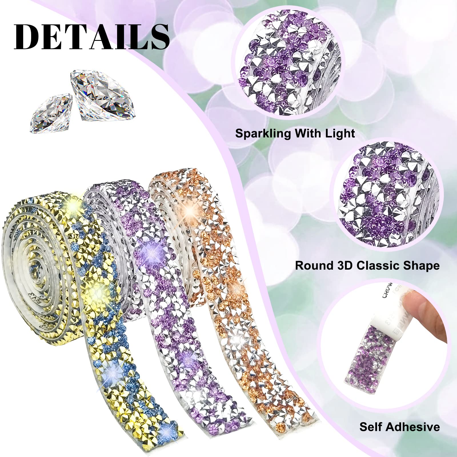 Caractéristiques: Matériel: strass avec papier autocollant Couleur : Rouge, coloré, noir, violet, bleu, or Quantité : 6 rouleaux Longueur de chaque rouleau : 1 yard (91cm) Largeur de chaque rouleau : 0,9 cm Le forfait comprend : 6 rouleaux de rubans strass cristal auto-adhésifs Avis chaleureux: Il est préférable de ne pas entrer en contact avec de l'eau ou d'autres liquides pendant environ 48 heures après l'application. Nombreuses applications : les bandes de strass en cristal peuvent être utilisées pour différentes occasions et différents articles. HsentimenH Lot de 6 rouleaux de Tape adhésif Diamond avec Ruban Strass 8 Rangées, Rouleau D'Enveloppe De Maille Diamant Ruban... parfait pour décorer vos œuvres d'art, ce qui peut leur donner vie, leur donner un aspect glamour, exquis et plus tridimensionnel. Ruban Strass En Cristal, Auto-adhésifs Ruban De Strass Décoratif, Auto-Adhésif Autocollant De Décoration Bricolage, Convient Pour L'artisanat, DIY (Doré Ruban Strass Autocollant En raison de la mesure manuelle, il peut y avoir une légère erreur dimensionnelle. Contenu de l'emballage : notre emballage vous offre 6 rouleaux de rubans diamantés auto-adhésifs en strass, 0,9 cm de large, 1 mètre de long par rouleau, 6 couleurs tendance différentes, assez pour répondre à la plupart de vos besoins de bricolage. Les strass ne contiennent pas de vrais diamants ou de vrais cristaux. 5 Rouleaux Ruban en Cristal Strass, Auto-Adhésif Diamant Bling pour...