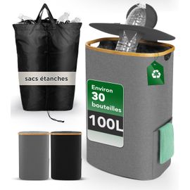 Capacité de 100L : notre boîte de collecte de bouteilles consignées mesure 40 x 32 x 75 cm et a une capacité allant jusqu'à 100 litres. Les deux sacs intérieurs amovibles et lavables en machine sont fixés à l'aide de solides boucles à corne, permettant un retrait rapide et un transport facile... Sac intérieur amovible et lavable:Le sac intérieur est maintenu par une fermeture en corne de bœuf et peut être facilement retiré et apporté à un centre de recyclage. Sac Recyclage Tri Poubelle De Cuisine Tri Sélectif Haja Argent Acier Inoxydable 60l Poubelle A Verre Lorsque vous ne l'utilisez pas, vous pouvez retirer les tiges et ranger la boîte pour gagner de la place. Roylvan Conteneur de collecte de bouteilles consignées 100L de grande capacitéGrande capacité:Le casier de collecte de bouteilles consignées de 100L vous offre beaucoup de place pour stocker les bouteilles en verre, les bouteilles en plastique, les canettes et autres bouteilles recyclables. Il suffit d'insérer les tiges de soutien dans les coins pour qu'elle tienne debout et conserve sa forme. Facile à installer et à ranger:La boîte de collecte de bouteilles consignées s'installe sans effort. Grâce à cette boîte de collecte de bouteilles consignées, votre maison est libérée du désordre et vous pouvez recycler votre ménage de manière plus efficace et plus écologique. Peu importe si vos bouteilles fuient, car le sac intérieur amovible est lavable en machine et reste donc toujours propre et hygiénique. Peu importe si votre bouteille fuit, car le sac intérieur amovible est lavable en machine et toujours propre et hygiénique. Corbeille de Tri Sélectif 100 Litres - Design et Fonctionnelle Couvercle caoutchouté pratique : la boîte de collecte de bouteilles consignées est équipée d'un couvercle en caoutchouc très élastique, qui présente une meilleure élasticité que les couvercles en plastique. La boîte de collecte de bouteilles consignées peut même être utilisée comme sac à provisions. D'une capacité de 100L (30-40 bouteilles), elle a un couvercle qui bloque les odeurs et un cadre en bambou durable avec du tissu Oxford résistant. Elle est... Elle peut facilement contenir des bouteilles, des canettes et des bouteilles en verre de toutes tailles. Matériaux de haute qualité : la boîte de collecte de bouteilles consignées est fabriquée en tissu Oxford 600D de haute qualité et résistant à l'usure, facile à essuyer et évitant les déversements et la saleté. Et le grand couvercle permet de loger facilement toutes les tailles de bouteilles, ce qui rend votre recyclage encore plus efficace. Lorsque vous ne l'utilisez pas, vous pouvez retirer les tiges et la ranger pour gagner de la place.