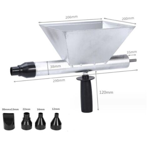 Pulvérisateurs De Peinture Pistolet à Mortier De Ciment - TRAHOO - Pulvérisateur Stuc 4 Trous Machine A Brick 【Matériaux de haute qualité】: le pulvérisateur de plâtre est fabriqué en acier inoxydable et est équipé d'une poignée en alliage de zinc, solide et durable, résistant à la corrosion, à la rouille et facile à nettoyer. Pulvérisateur Mural à 4 Jets, Ciment Mortier Pistolet à Pulvérisation pour Béton Murs Lourds Trémie de Pulvérisation de Mortier Largeur de pulvérisation : 500 mm. Le pulvérisateur de stuc VEVOR fabriqué en alliage durable et en acier inoxydable, dispose de 4 buses pour un plâtrage facile dans les espaces confinés, et est léger et portable. Pression d'air de travail : de 4 à 6 ATM. La puissance de travail correspond à 5 travailleurs. Pression de la vanne : 120 PSI fournit jusqu'à 100 CFM. Taille du trou de pulvérisation : 18 mm. 【Amovible】 : ce pulvérisateur de plâtre est amovible, léger et compact, ce qui vous permet de l'emporter facilement avec vous. Distance entre le pulvérisateur mural et le coulis : maximum 50 à 100 mm. Idéal pour le plâtrage traditionnel des maisons de stuc ou des pulvérisations de mortier de bricolage. Longueur du manche : environ 60 cm. Pulvérisateur Mural à 4 Jets, Ciment Mortier Pistolet à Pulvérisation... Contenu : 1 pistolet pulvérisateur pour mortier de ciment. Dimensions de l'article : 770 x 225 x 210 mm. Spécifications: Couleur : argenté. Convient pour pulvériser du plâtre, du plâtre, du béton pulvérisé, du béton papier, de la fibre de verre, du mélange de terre, etc. Pistolet à Coulis de Ciment Pistolet à joints pour mortier - Pompe à mortier manuelle avec 4 buses -Pistolet à mortier. Prix de comparaison. 39,24 €. 21,14... Quantité de trous de pulvérisation : 4 pièces. Convient pour une utilisation : stuc, ciment, boue d'eau, boue calcaire, mortier imperméable et autres matériaux de pulvérisation mince.