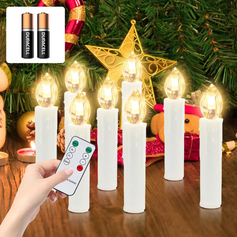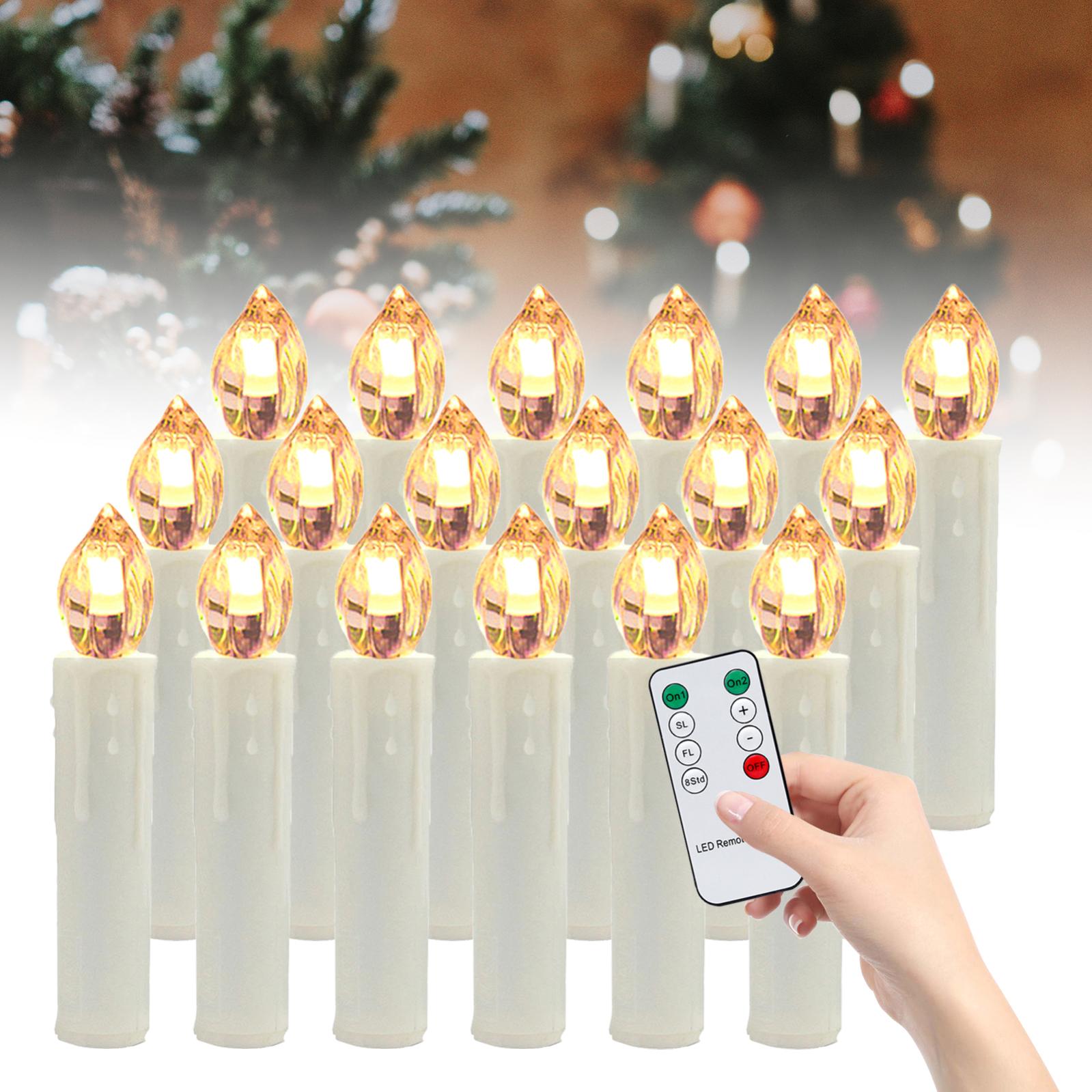 Parfait pour la décoration intérieure et extérieure de Noël. Guirlande Telecommande Sans Fil Lot 20 Bougies Led Piles Incluses Bougies LED Noël Yunsheng - Lot De 20 Avec Télécommande - Flamme Vacillante - Minuterie 4/6h - IP64 - Avec Piles Guirlande Bougie Sapin e* Sans fil avec clip à fixer - Fonction télécommande : bouton marche/arrêt - Les lumières restent allumées en permanence - Avec le bouton « + » et « - » - La luminosité peut être réglée - Minuterie de 6 heures - Allumez le mode d* (lueur de bougie simulée), selon l'atmosphère désirée, on - vacillant - SL - clignotement lent. Yunsheng Lot de 20 bougies pour sapin de Noël avec télécommande et minuterie, sans fil, à intensité variable, alimentées par piles, IP64, décoration de Noël : a * Idéal pour décoration de Noël. La flamme vacillante est hyper réaliste, et surtout, aucune chaleur dégagée – totalement safe même avec les enfants ou les animaux. Chaque pack contient 20 bougies, 20 clips, 20 piles, 20 anneaux étanches et la télécommande Contenu : chaque lot contient 20 bougies de Noël LED, 20 clips, 20 piles AA, 20 anneaux étanches et 1 télécommande. Télécommande et fonction minuterie LED Bougie : télécommande à 7 boutons avec fonction minuterie (distance de contrôle de 8 mètres) qui permet d'allumer et d'éteindre la bougie à distance, de régler la luminosité et le mode clignotant. 100x Bougies LED de Noël Bougies d'arbre de Noël sans fil avec... Poids (y compris le clip et la batterie) : 39,6 g. B * Étanche -- Convient pour l'intérieur. Ensemble de 20 bougies pyramidales pour sapin de Noël - Rouge C * amovible * Intensité variable -- Veuillez appuyer sur + et - sur la télécommande pour réduire la luminosité de la lumière. Contenu de la livraison : 20 bougies LED, 20 clips avec support de bougie, 20 piles AA, 1 télécommande (pile incluse), 1 manuel d'utilisation (français non garanti). Portée de la télécommande : 8 m. Réglez la fonction minuterie de 6 heures, la bougie s'éteint automatiquement après 6 heures et s'allume automatiquement le lendemain. Bougie étanche sans flamme : chaque bougie est équipée d'un anneau en caoutchouc étanche et a un indice de protection IP64., Il peut être utilisé normalement en plein air les jours de pluie.