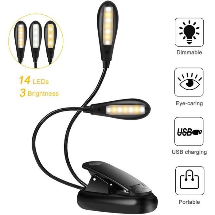 Cette pince de lampe de lecture dispose d'un indicateur de charge et d'un indicateur de fonctionnement qui vous permet de connaître l'état de fonctionnement à tout moment et en tout lieu. Lampe De Livre ZYRIVON Lampe De Lecture,16 LED Liseuse Clip Rechargeable USB-C,Doux Pour Yeux,Luminosité Réglable & 3 Modes,360° Cou Flexible, Longue Durée, Mini Veilleuse Pour Lire Au Lit,Enfant,Kindle,Voyage Lampes De Lecture 【USB C Batterie rechargeable de 1000 mAH】Grâce à sa batterie intégrée de 1000 mAH, la lampe de lecture offre jusqu'à 10 heures d'éclairage à luminosité élevée et 82 heures à luminosité faible, une fois la batterie entièrement chargée. 3 Modes de température de couleur : soit en mode chaud 3 000 K, soit en mode blanc neutre 4 500 K, soit encore en mode blanc froid 6 000 K. Lampe de lecture, 14 LED à commande tactile, 3 couleurs et 8 luminosités, lampe de lecture... Il convient également de mentionner que grâce à la fonction de mémoire intelligente de cette lampe de lecture livre, vous pouvez à tout moment rétablir la lumière d'origine. La surface en silicone de la lampe de lecture LED de Bonsery protège les pages du livre contre les traces de clips et assure une bonne tenue. Liseuse 16 LED Liseuse Clip Lampe Rechargeable USB 9 Modes de Luminosité et 3 Températures de Couleur, Lampe Clip Flexible 360° pour Lit, Livre, Veilleuse et... Le processus de chargement ne dure que 3 heures avec le câble de type C fourni. Il suffit d'appuyer brièvement sur l'interrupteur pour changer de mode ; appuyer longuement sur le bouton pour régler la luminosité de 10 % à 100 %. Hub À Pince Usb - C Pro Avec Port De Données Usb - C, Données Usb - A 3.0, Lecteur De Cartes 【3 Modes & Variation continue】3 Modes de température de couleur : soit en mode chaud 3 000 K, soit en mode blanc neutre 4 500 K, soit encore en mode blanc froid 6 000 K. La lampe de lecture est équipée d'un clip flexible qui s'ouvre sur 4 cm. 【360° flexible & Clip stable】Le col de cygne est fabriqué à partir d'un tube en silicone de haute qualité et peut être tourné de manière flexible à 360°. Lors de la lecture, le faisceau lumineux tombe exclusivement sur le livre, de sorte que le partenaire ou le voisin de siège n'est pas dérangé. Grâce à sa faible consommation d'énergie, une liseuse LED est en outre faite pour les longs voyages ou le camping.