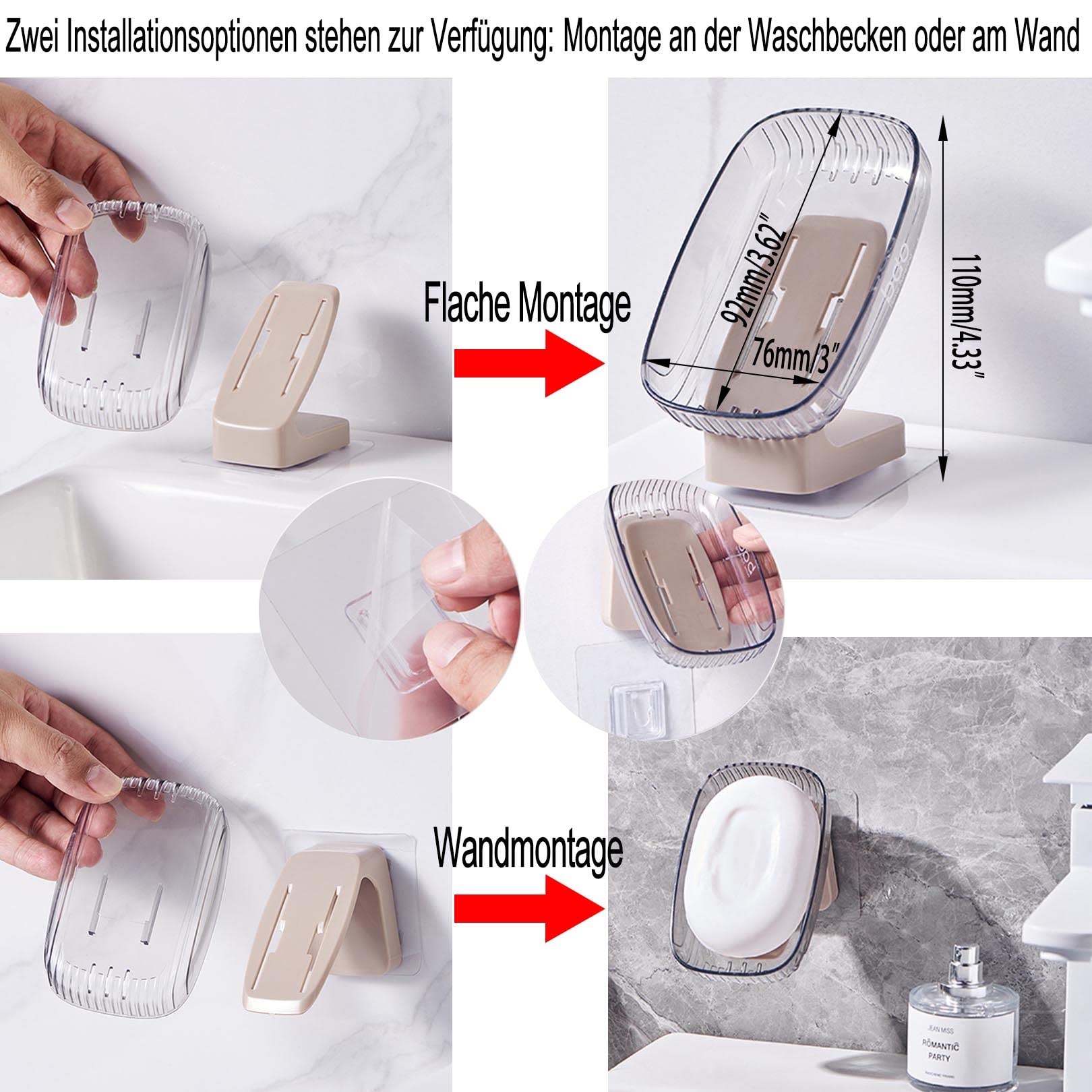 Noter:En raison des différents moniteurs effet de lumière, couleur réelle de l'élément peut être légèrement différente de couleur montrée sur les images. Distributeur automatique de savon mural 13cm Caractéristiques: - Type3: Bathroom Supplies - Type2: Bathroom Soap Holder - Type1: Leaf Soap Drain Holder - Type: Soap Dishes - Stock: Sufficient - Size: 12*13.5cm - Shipment: Fast - Origine: CN (Origine) - Numéro de Modèle: Soap Box - Matériel de vaisselle: ABS - Material: ABS PS Silicone - Features: Safe and , durable - Drain Outlet: V-shaped drain, keep dry - Color: As picture show - Bottom suction cup: strong adsorption, not easy to move Porte-savon Mural En Céramique Pour Salle De Bain Tudor Classique Porte-drainage mural avec crochet visible, qui peut être tiré maintenu des cordes de tête, regarder plus encore. SHOUCAN Plateau Porte-Savon 2 pièces avec Grille de Drainage et Support... Veuillez prévoir une écart de mesure 1-2CM en raison de mesure manuelle. Couche de drain supérieure peut drainer de l' couche inférieure peut maintenir de l', ce qui est très pratique. Liste de paquets:1 * Boîte de rangement Caractéristiques: - Type3: Bathroom Supplies - Type2: Bathroom Soap Holder - Type1: Leaf Soap Drain Holder - Type: Soap Dishes - Stock: Sufficient - Size: 12*13.5cm - Shipment: Fast - Origine: CN (Origine) - Numéro de Modèle: Soap Box - Matériel de vaisselle: ABS - Material: ABS+PS+Silicone - Features: Safe and , durable - Drain Outlet: V-shaped drain, keep dry - Color: As picture show - Bottom suction cup: strong adsorption, not easy to move
