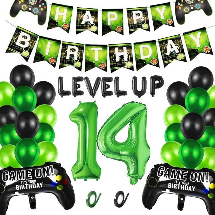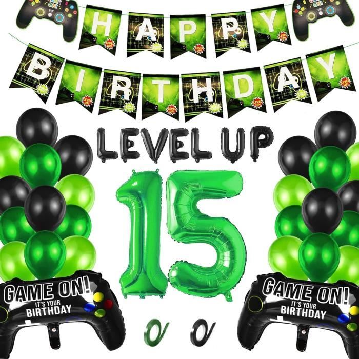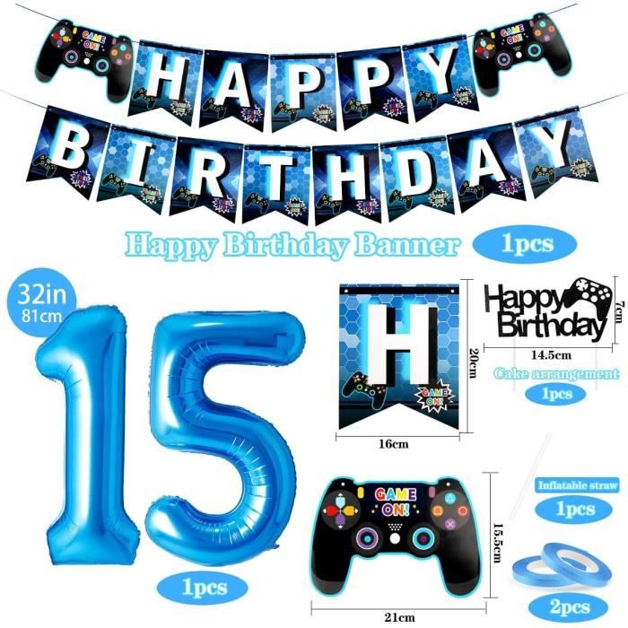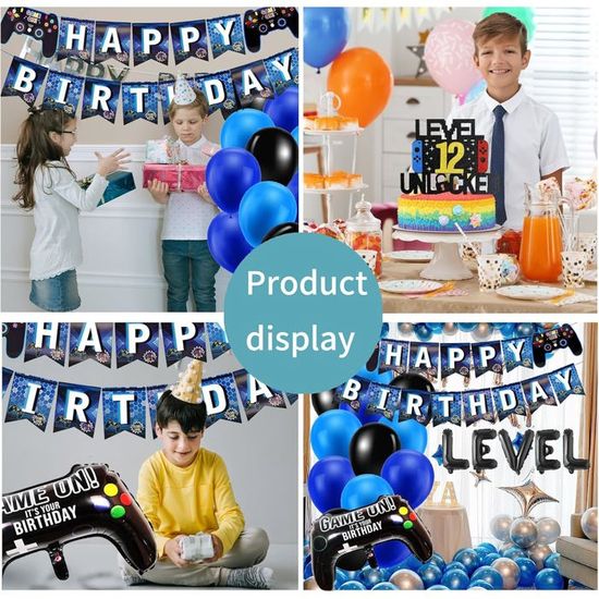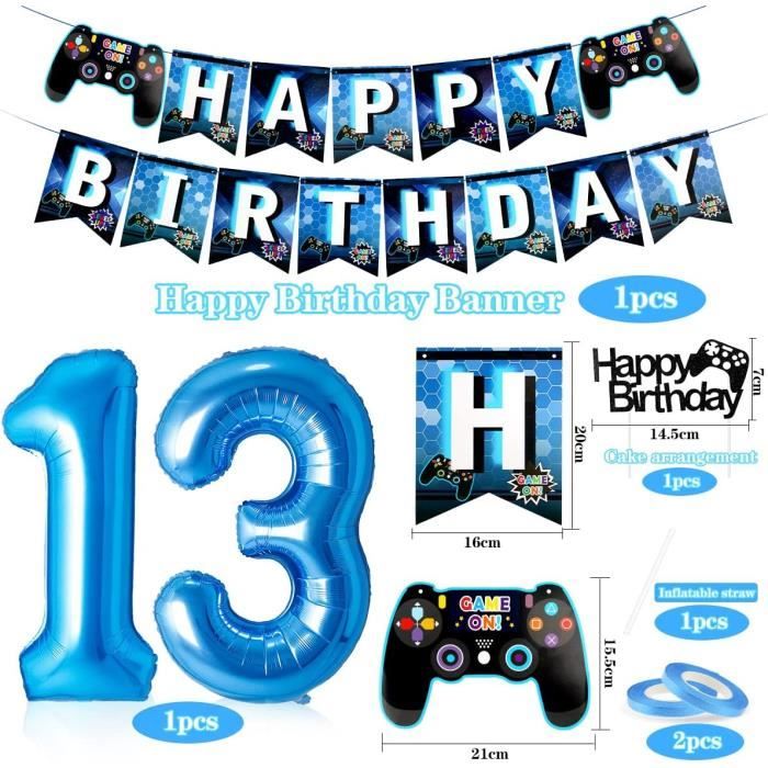 (Remarque : le produit peut avoir une odeur normale de latex et doit être retiré pendant quelques jours avant utilisation., ) Ce matériau a un éclat métallique, il est beau, écologique et réutilisable., 2., Décorations de fête de jeu vidéo sont basées sur le jeu vidéo sur le jeu vidéo, faciles à accrocher et à faire des combinaisons qui les rendent pleines de plaisir et ajoutent une belle touche aux fêtes de jeu., 3., Decoration gateau gamer, ajoutez une touche ludique et festive à l'anniversaire de votre fils avec cette décoration de gâteau au design de jeu vidéo, décoration garçon d'anniversaire., 4., Vous paille attachée pour gonfler le ballon en aluminium. Ensemble de Ballons de Fête de Jeu Vidéo : ballon en aluminium numérique bleu 13 (32 pouces), 12 ballons en latex (6 noirs, 6 bleus), 12 ballons imprimés (6 bleus, 6 noirs), 2 étoiles bleues, 2 feuilles d'aluminium pour manette de jeu ballons, 1 bannière de thème de jeu, 1 ensemble de ballons noirs LEVEL UP (16 pouces), 1 décoration de gâteau de jeu, 2 rubans bleus Bonne... Le ballon en aluminium n'a aucune élasticité. Spécifications: -Matériau : latex et en feuille -Quantité : 32 Pièces -Couleur :bleu Contenu du Colis: 1 ballon aluminium numéro 13 1 bannière 2 ballons aluminium contrôleur de jeu vidéo 1 ballon aluminium LEVEL UP 24 pièces ballons en latex (8 noirs + 8 bleu profond + 8 bleu clair) 1 Jeux decoration gateau 2 rouleau de ruban Note: - le produit peut avoir une odeur normale de latex et doit être retiré pendant quelques jours avant utilisation. Passez une soirée inoubliable en famille et entre amis Veuillez gonfler lentement à environ 80 %. JGS Premium - Décoration de gâteau d'anniversaire sur le thème des 【Facile à utiliser】Fournitures de Fête de Jeu Vidéo est facile à assembler, elle ne prend que très peu de temps à assembler, puis à l'accrocher dans la zone où vous souhaitez l'accrocher. Gonfler les ballons et décorez la pièce pour créer une atmosphère joyeuse. 【Haute qualité】Le ballons anniversaire garçon est fait de latex de haute qualité et de papier d'aluminium, qui est robuste et durable, non toxique et sans goût, ne vous inquiétez pas de l'éclatement du ballon après le gonflage. Decoration Anniversaire Décoration De Jeux Vidéo Ballons 13 Ans, Anniversaire Gamer 13 Ans Décoration Anniversaire Ballons De Décoration De Jeu 12 Ans, Anniversaire Gamer 12 Ans, Ballon... Nos deco anniversaire gamer sont parfaites pour un garçon de 13 ans. 【Ballons de Décoration de Jeu 】1 ballon aluminium numéro 13, 1 bannière, 2 ballons aluminium contrôleur de jeu vidéo, 1 ballon aluminium LEVEL UP, 24 pièces ballons en latex (8 noirs + 8 bleu profond + 8 bleu clair), 1 décoration de gâteau, 2 rouleau de ruban