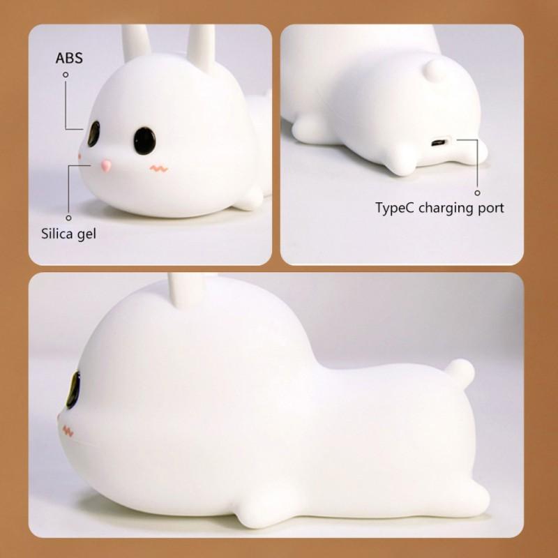 Éclairage durable : profitez de la commodité de cette jolie veilleuse avec une batterie intégrée de 1200 mAh qui offre jusqu'à 8 heures d'utilisation continue. Personnalisez la luminosité et la couleur en l'ajustant doucement d'un simple toucher, ce qui le rend pratique et facile à utiliser dans l'obscurité. De plus, sa longue durée de vie de la batterie gardera votre espace éclairé toute la journée. Robuste et sans danger pour les enfants : fabriquée à partir de silicone durable, cette ravissante veilleuse est conçue pour durer et être utilisée tous les jours. Sans recharge fréquente nécessaire, profitez de l'avantage d'une longue durée de vie de la batterie. Liste : 1 lampe en silicone doux au toucher., 1 câble USB Fabriquée en silicone souple et résistant, cette veilleuse touch-sensitive est idéale pour les enfants comme pour les adultes. Grâce à sa technologie tactile... Égayez votre espace avec notre lampe en silicone doux au toucher. Pratique et sûr pour les enfants et les adultes. Design ergonomique : notre jolie veilleuse dispose d'une lumière douce qui est agréable pour vos yeux. Veilleuse pour enfants – Lampe en silicone rechargeable par Économe en énergie : notre jolie veilleuse dispose d'une minuterie intelligente qui éteint automatiquement les lumières après 15 minutes pour économiser de l'énergie et garantir un sommeil paisible. Veilleuse En Silicone Veilleuse En Forme D'animal | Lampe De Nuit Pour, Lapin Mignon à Grand Visage – Veilleuse Tactile En Silicone Doux Pour Chambre D'enfant, Adolescent Veilleuse Enfant En Silicone Son design lisse et sans bords garantit qu'il est sûr et sans danger pour les enfants. Il ne provoque aucune gêne, ce qui le rend parfait pour lire au coucher, se détendre ou apaiser votre bébé. Durée de fonctionnement : 5 à 6 heures. Cette veilleuse projette une lueur apaisante dans la chambre. Le changement de couleurs au toucher apporte une joie interactive. Contrôle intuitif par télécommande ou tactile - idéal pour les petites mains ![Lumière Douce et Recharge USB]Avec sa batterie 1200mAh, cette veilleuse étoile offre plus de 10 heures d'utilisation par charge Son aspect lisse et son émission de lumière douce sont doux pour les yeux.