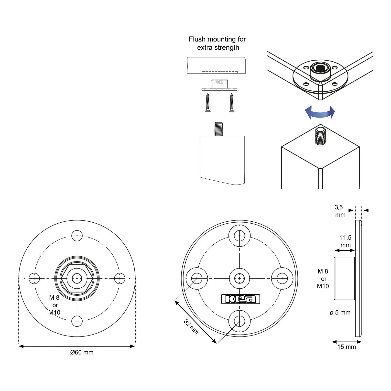 - Matériau : zinc moulé sous pression - Possibilité d'installation dissimulée - Peut être utilisé universellement comme pied de meuble ou de table connecteur de pied. - Montage sûr, rapide et facile - la connexion peut être déverrouillée en un rien de temps - permet une installation affleurante Dimensions : diamètre : 60 mm hauteur : 14 mm Filetage intérieur M8 Assemblage Le support est fraisé à affleurement dans la construction du cadre, par exemple un dessus de table et fixés avec des vis pour panneaux d'aggloméré (non comprises dans la livraison !, ). Contenu de la livraison : 1 pièce sans vis de fixation PLAQUE DE FIXATION pour Pied de Table Weka en Métal Montage Spann... Idéal pour les pieds de meubles ou de table avec une vis M8 pré-assemblée. Utiliser avec précaution avec des meubles lourds pour assurer la stabilité. 2 x SOTECH raccords de pied de table KEA ronds Ø 60 mm avec filetage intérieur M10 Universellement utilisable comme connecteur de pied de meuble ou de pied de table pour les pieds de meuble avec filetage M10 Matériau : zinc moulé sous pression / Possibilité de montage invisible / Assemblage démontable en un tour de main / Montage à fleur de surface Diamètre : 60 mm / Hauteur : 14 mm / M10 femelle Contenu de la livraison : 2 pièces sans vis de fixation Matériau : zinc moulé sous pression / Possibilité de montage invisible / Raccord démontable en un tour de main / Montage à fleur de surface Utilisation universelle comme connecteur de pied de meuble ou de pied de table pour les pieds de meuble avec filetage M8 Veuillez considérer que vos pieds de meubles doit être équipé d'une vis filetée M8 ! Gedotec Plaques de Fixation d'angle avec Filetage M8 pour Pieds de Meubles et de Table | Plaque de Fixation 60 x 16 mm | Fixation pour Pieds de Ferrure D'assemblage Plaque De Montage Ronde 4 Pièces Avec Filetage M8, Plaque De Montage M8 Gewinde Befestigungsplatte 36 Mm Sugatsune Lamp Umaxo Ap36 M8 200 140 501 4 Stueck Pied De Meuble Table Dalsys Ecrou coulissant Filetage M8 Argent Rail de montage, 100 pièces... Par exemple, les pieds de meubles peuvent être solidement fixés aux meubles.