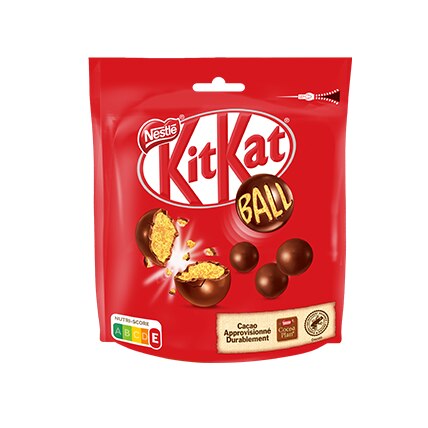 Peut contenir : FRUITS A COQUE. Description du produit KITKAT Ball, ce sont des billes de chocolat blanc (44 pourcent) au coeur de céréales croustillantes (19 pourcent) enrobées de crème confiseur (35., 9 pourcent). Celebration Chocolat Chunky - Barres Chocolat Au Lait Chocolat Noel La portion repère est de 10 billes de KITKAT Ball. Important : les jeunes enfants (moins de 4 ans) ont des capacités de mastication limitées et peuvent s'étouffer avec des confiseries de petite taille. Chocolat A Offrir BONBON AU CHOCOLAT LAIT KITKAT BALL NESTLE 250Grs - Drive Z'eclerc Celebration Chocolat La marque KITKAT est née en Angleterre en 1935., Depuis, KITKAT est devenue une barre iconique avec 6 milliards de barres vendues dans le monde par an. Coconut e Salted Caramel: os novos sabores de KITKAT Important : les jeunes enfants (moins de 4 ans) ont des capacités de mastication limitées et peuvent s'étouffer avec des confiseries de petite taille HAVE A BREAK, HAVE A KITKAT., Une pause., Un break, un KITKAT Un break, un KITKAT. Kit Kat dans ces petites billes, légères, croustillantes à souhait et enrobées de chocolat au lait 100% pur beurre de cacao, on profite de ce petit plaisir. Lot... Billes au chocolat au lait, disponible dans votre magasin Leader Price LP Possession Mode d'emploi Produit prêt à consommer HAVE A BREAK, HAVE A KITKAT., Une pause.