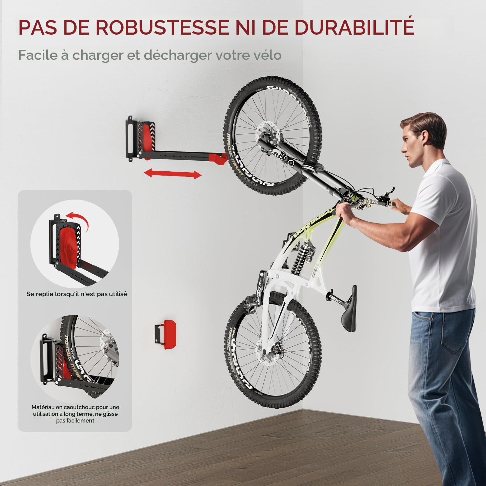 La butée de pneu stabilise le vélo et l'empêche de bouger tout en protégeant votre mur contre les rayures. Lot De 2 Supports Muraux Pivotants Pour Vélo, Cintres De Vélo Pour Le crochet revêtu de caoutchouc et la butée de pneu stabilisent le vélo et protègent contre les frottements et les rayures. Solution peu encombrante pour les amateurs de cyclisme. Treillis Inox V4A - pour plantes grimpantes - Jeu complet de supports... Le crochet dispose d'un revêtement en caoutchouc lisse qui protège votre vélo contre les rayures, réduisant la friction et les éventuelles chutes. Le porte-vélos pivotant peut être ajusté horizontalement de +65° à -65°, pour un rangement pratique et un accès facile. Crochet pour casque Support pour Casque, 4 Crochets Adhésifs pour... Installez-le dans votre garage, abri de jardin, maison ou appartement pour maximiser le stockage et garder votre vélo en sécurité et en sécurité. Notre support de vélo est la solution ultime pour les cyclistes qui aiment un excellent mélange de commodité et de fonctionnalité. Lot de 2 supports à vélos muraux, support noir pour 2 vélos Doté d'un design pivotant réglable, ce porte-vélos permet une suspension facile et un rangement pratique contre le mur afin d'économiser de l'espace. Design pivotant réglable : ce support mural pour vélo de garage dispose d'un mécanisme pivotant qui vous permet d'accrocher le vélo à plat contre le mur, mais également de le charger et de le démonter avec facilité. Doté d'un design pivotant robuste, notre support mural pour vélo vous aide à économiser de l'espace dans votre garage tout en gardant votre vélo bien rangé, à plat contre le mur Comprend des crochets pour accessoires : notre support mural vertical pour vélo est livré avec un crochet de rangement intégré pour que vous puissiez accrocher votre casque, gants et autres accessoires de cyclisme et les garder à portée de main. Ne vous inquiétez pas, ce support de vélo peut supporter jusqu'à 35 kg, gardant tout en place en toute sécurité.