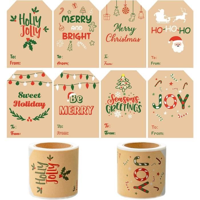Matériau durable de haute qualité : nos étiquettes de Noël autocollantes sont fabriquées en papier kraft, durable et pas facile à décoller. Vous pouvez écrire à vos clients est également une bonne idée lorsque vous avez votre propre entreprise. Lot de 300 étiquettes de Noël autocollantes de 5,1 x 7,6 c pour enveloppes, boîtes, cartes... Ils rendent votre emballage cadeau plus exquis et distinctif. Vous pouvez écrire sur l'autocollant avec un stylo, un crayon ou des marqueurs, et facile à installer et à enlever sans laisser de résidus. Ils ont une excellente apparence et un toucher tout en ayant un bel emballage et impression. Il est adapté pour les surfaces de différents matériaux. Étiquettes de Noël pour cadeaux : les autocollants décoratifs de Noël peuvent être appliqués pour coller sur la surface de toutes sortes de cadeaux et cadeaux, boîtes cadeaux, enveloppes, sacs cadeaux, travaux de bricolage et plus encore. Lorsque vous voulez l'utiliser, il suffit de retirer l'autocollant et de le coller directement sur la surface dont vous avez besoin. 8 motifs à thème classique : nos étiquettes cadeaux de Noël sont composées de 8 motifs à thème classique, tous liés à Noël, tels que le Père Noël, le cerf, la cloche de Noël, les chaussettes de Noël, le bonhomme de neige, le sapin de Noël, la police « Merry Christmas », etc. Lot de 300 étiquettes autocollantes avec nom « Merry Christmas Haooryx Lot De 160 Étiquettes Autocollantes En Papier Kraft Pour Cadeaux De Noël, Étiquettes Vous pouvez également les utiliser comme marques et autocollants dans la vie quotidienne, cela créera une atmosphère chaleureuse et joyeuse pour votre maison et votre fête.