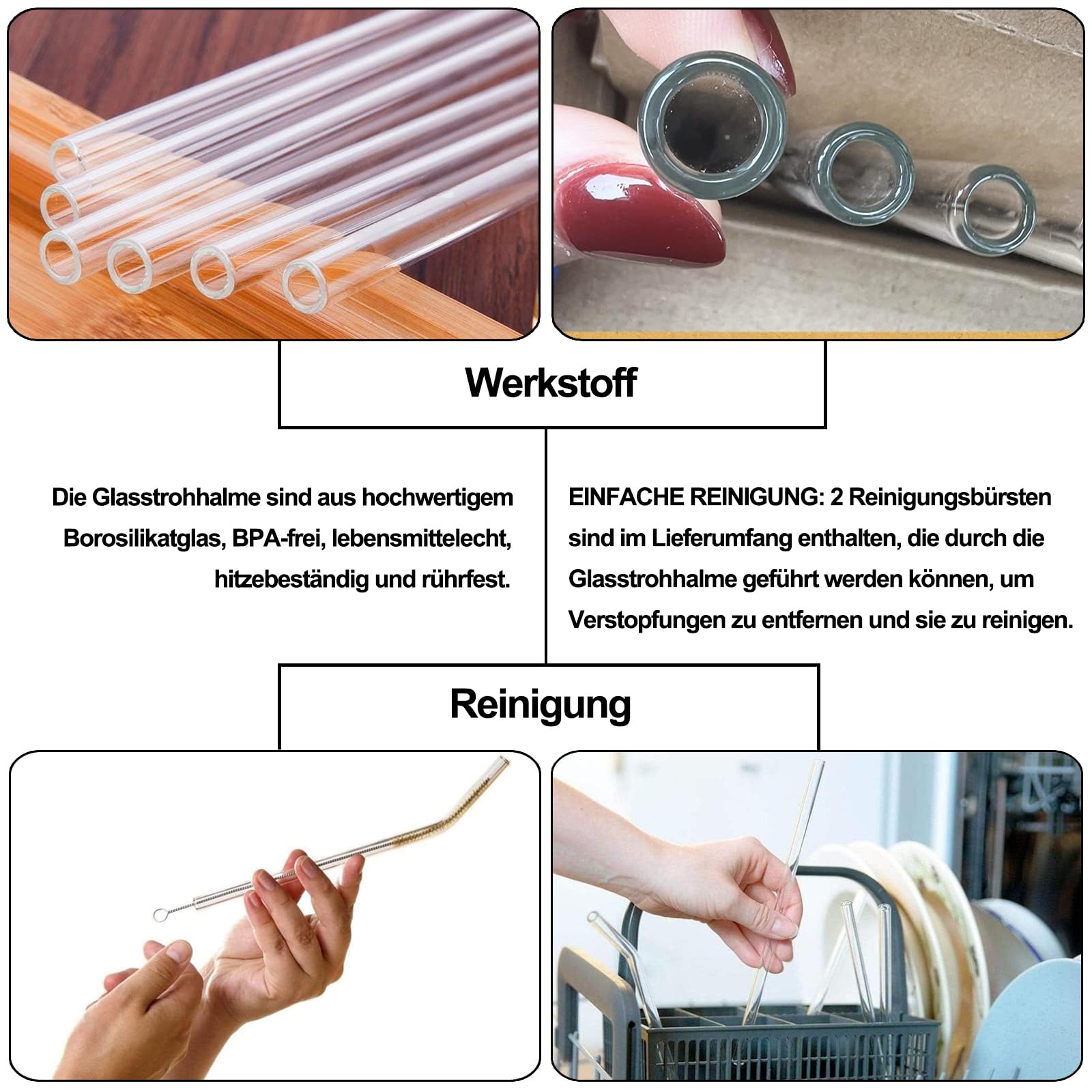 Lot De 10 Pailles En Verre Courtes, Réutilisables Et Résistantes Aux Chocs Avec 2 Brosses De Nettoyage Pour Whisky, Café, Jus, Soda, Thés