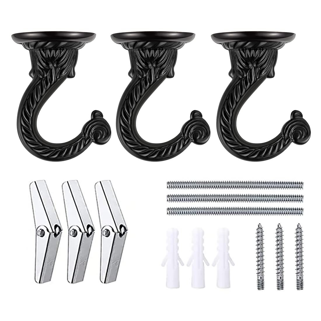 Les chambres à coucher Longueur des deux trous : 37 mm. 115 Pcs Crochets À Visser Inox Plafond Vis Crochet Convient Aux Tasses À Thé Aux Design à visser : la base du crochet a un trou de vis, vous pouvez les connecter avec la vis ou avec les ailes à bascule et ensuite fixer les crochets au mur ou au plafond, pas besoin d'outils supplémentaires, facile et pratique Longueur totale du crochet : 66 mm, diamètre de la base : 55 mm. Crochet De Plafond INCREWAY Lot De 3 Crochets De Plafond Robustes à Visser Pour Plante Crochet Matériau en alliage de qualité supérieure : fabriqué en alliage de haute qualité, robuste et durable, pas facile à casser, bonne performance anti-corrosion et longue durée de vie. Forte capacité de charge : la capacité de charge maximale est d'environ 18 kg, le crochet de plafond est adapté pour accrocher certains articles lourds. Motif sculpté : livré avec un motif floral vintage européen sur leur surface, exquis et unique, le crochet mural noir s'adapte facilement au style de votre pièce. CROCHETS DE PLAFOND pour Suspendre des Plantes, Cintre pour Support de...