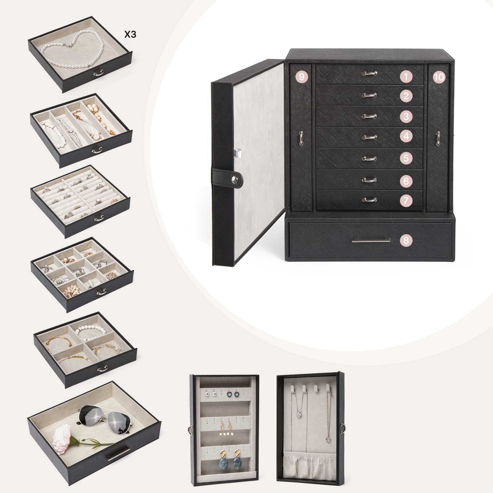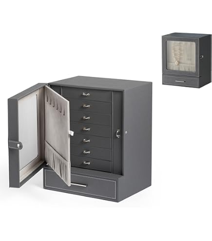 [Super Qualitéé] - La conception du couvercle translucide sur le dessus donne à la boîte à bijoux un mystère élégant. Nos Boîtes à Montre sont disponibles en plusieurs variétés, telles que le bois massif et le cuir véritable, vous apportant un gage de qualité destiné à vos... [Pratique et Commode] - La plaque à colliers exclusivement conçue par Meerveil vous permet de ranger des colliers et des boucles d'oreilles tout en les exposant parfaitement. Boîtes à Bijoux Et Présentoirs Meerveil Boîte à Bijoux En PU Pour Ranger Des Colliers, Boucles D'Oreilles, Lunettes De Soleil, Bracelets Et Montres, Femmes (10 Tiroirs, Verre Changhong, Grande, Blanc Coffret Homme Notre boîte à bijoux offre une protection délicate pour vos bijoux. Boîte à Bijoux, Coffre à Bijoux à 3 Couches Portable pour Bracelets... Meerveil : Meilleurs 19 produits de meubles marque [Protection Soigneuse] - Par rapport aux boîtes en plastique, la boîte à bijoux exquise peuvent non seulement garder vos bijoux organisés, mais aussi s'accorder à merveille avec de beaux bijoux. La boîte à bijoux est fabriquée en panneau de fibres de bois à densité moyenne (MDF) recouvert de cuir synthétique de haute qualité, avec la doublure en velours de qualité supérieure, douce au toucher et offrant une protection parfaite pour vos bijoux.