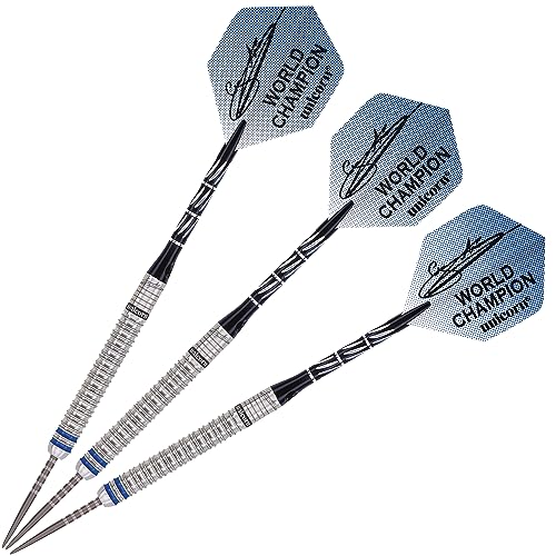 Unicorn Gary 'The Flying Scotsman' Anderson Duo Jeu De Description du produit Unicorn Jeu de fléchettes Duo Phase 6 | Gary « The Flying Scotsman » Anderson | 90 % tungstène avec revêtement en titane bicolore bleu et doré | Vols ultra rapides durables | Pointes de volute à pointe en acier | 25 g Avertissement De Sûreté Aucun avertissement applicable Unicorn Gary Anderson Phase 6 Duo 90% Contient: 3 Fléchettes, 3 Ailettes Et 3 Tiges ... Elles sont une réplique exacte de sa fléchette Phase 6, que The Flying... Unicorn Jeu De Fléchettes Gary « The Flying Scotsman Juego de dardos de punta de acero de unicornio Gary ‘The Flying... Corps de 25 g – Longueur 50,7 mm – Diamètre 7,5 mm – Poids assorti garanti certifié ± 0,1 g , 90 % tungstène