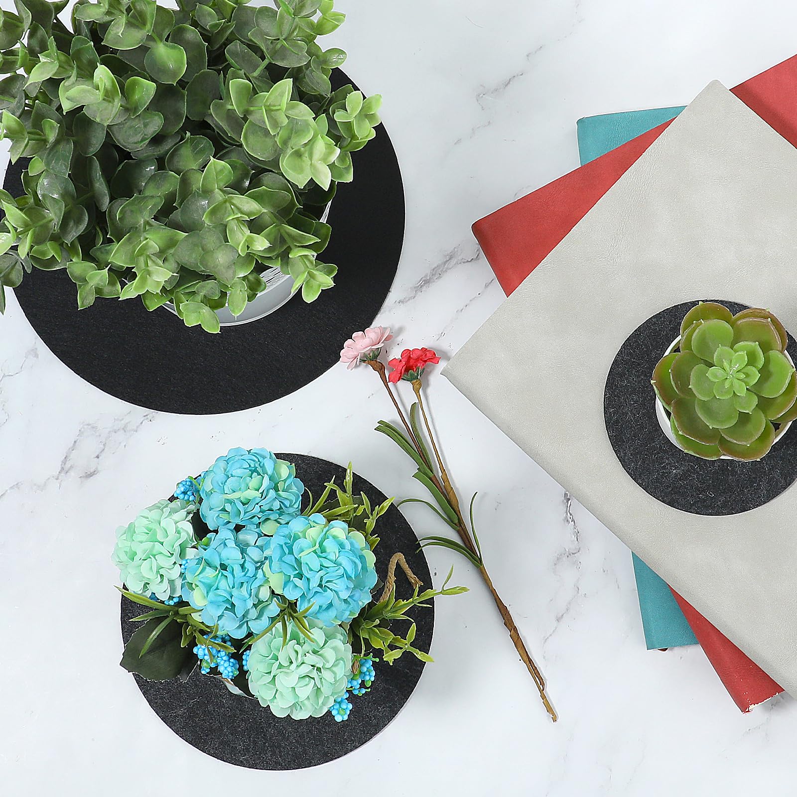 L'emballage léger (60 g net et poids brut) le rend pratique pour l'expédition ou le transport, tandis que le design compact minimise les déchets. Lot De 6 Sous-verres Ronds En Feutre Pour Intérieur - Réversibles, Absorbants Et Imperméables - Pour Pots De Fleurs - 3 Tailles - Fournitures De Bricolage (10,2 Cm, 15,2 Cm, 20,3 Cm Contenu : Lot de 3 dessous de verre de chaque grand, moyen et petit noir, 6 par paquet Caractéristiques : Catégorie : bac à plantes., Couleur : noir., Matériau : feutre., Fonction : accessoire. Protégez votre table, buffet, étagères ou autres surfaces sensibles des rayures, des taches et des dommages causés par la chaleur et placez vos verres, bouteilles, vases, bougeoirs, pots et bien plus encore sur nos sous-verres de haute qualité en feutre polyester très agréable et fin Son design discret garantit qu'il complète différents styles sans surcharger l'esthétique générale. Il peut protéger les surfaces contre les dommages causés par l'eau, ajouter une touche décorative aux arrangements végétaux, ou même être utilisé comme dessous de verre. Lot de 6 Dessous de Verre Ronds et Sculptés – Artisanat et Charme – Le... Le tapis de plantes en feutre pour plantes d'intérieur est léger et respectueux de l'environnement, assurant qu'il se fond parfaitement dans n'importe quel environnement tout en conservant un look pratique et moderne. Dimensions de l'emballage : 21 × 20 × 1,3 cm. DAJAVE Lot de 32 dessous de verre ronds réversibles en feutre pour Méthode d'emballage : sac., Poids net : 60 g., Poids brut : 60 g. Le design des dessous de verre en liège garantit qu'il ne prend pas beaucoup de place, ce qui le rend idéal pour les petites zones ou dans le cadre d'un affichage en couches. Ces dessous de verre pour plantes d'intérieur sont disponibles en trois tailles : grand (7,83 × 0,3 cm), moyen (5,87 × 0,3 cm) et petit (3,9 × 0,3 cm). Le dessous de verre simple mais fonctionnel en fait un ajout pratique à n'importe quel espace, que ce soit pour les plantes d'intérieur ou dans le cadre d'une table. Chaque paquet comprend trois grands, trois moyens et trois petits plateaux, soit un total de six plateaux par sac.