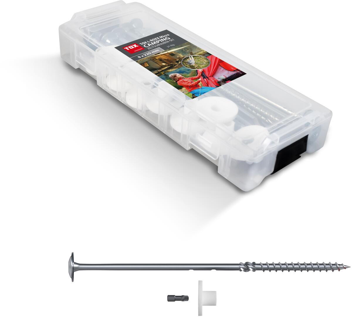 Vous pouvez également utiliser les confortables gants de montage pour diverses activités liées au camping. De plus, les rondelles en plastique blanc assurent une bonne visibilité et protègent les boucles contre les dommages par frottement. Serrage et desserrage rapides des vis de camping - kit avec embout TX40, gants de montage confortables et rondelles blanches assurent une bonne visibilité et protègent les boucles et les œillets Tox L-Boxx Mini Set de camping (39 pcs.) (39 pcs Ensemble de camping TOX L-BOXX Mini Tout ce dont vous avez besoin pour sécuriser votre tente est inclus dans le pratique ensemble TOX L-BOXX Mini, qui dispose de 6 compartiments individuels pour un rangement facile dans vos bagages de voyage. Le cheville rouge multi-usages a rendu TOX célèbre : dans le domaine des chevilles multi-usages, l'entreprise est leader. Sans enfoncer : set de camping dans la L-BOXX Mini pratique pour une fixation plus forte par rapport aux piquets ordinaires - vis de tente en deux longueurs... Évite les risques de trébuchement : Vis de sol galvanisées avec entraînement Torx pour un vissage facile et une tête plate en forme d'assiette pour une finition affleurante dans le sol La marque TOX représente des produits innovants et des solutions compétentes dans le domaine de la technologie de fixation. L'ensemble de camping est livré avec 18x vis à tête fraisée de 8x160 mm (8 unités) et 8x220 mm (10 unités), 18x rondelles en plastique Ø35 mm, 2x embout TX40, 1 paire de gants de montage taille 9 et 1x L-BOXX Mini. Piquets à visser polyvalents - pour sécuriser les tentes, les pavillons, les stores, les filets de volley-ball, les trampolines ou les bâches, que ce soit dans un sol enraciné, rocailleux, gelé ou argileux TOX L-Boxx (094903404) ab 139,00 € | Preisvergleich bei idealo.de Piquet Cloture TOX L-BOXX Mini Set De Camping Avec 18x Vis De Tente (8x160 8x220mm) Rondelles Correspondantes, 1 Paire De Gants De Montage 2x Embouts TX40 Boite Rangement Vis Les vis de camping peuvent être vissées et dévissées facilement et rapidement avec un tournevis électrique (ou à la main) avec la pointe appropriée TX40, ce qui permet d'économiser du temps et de l'énergie !