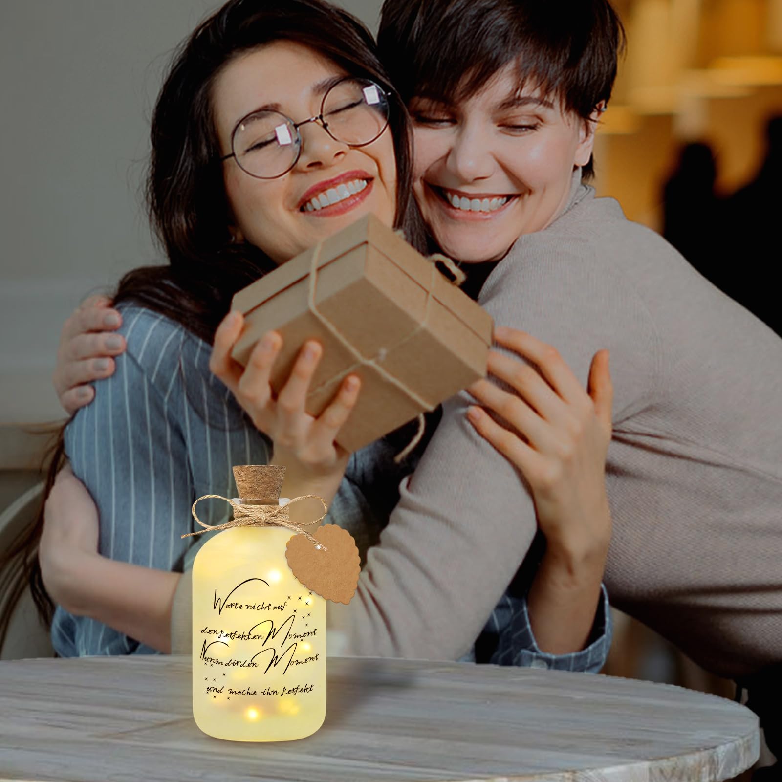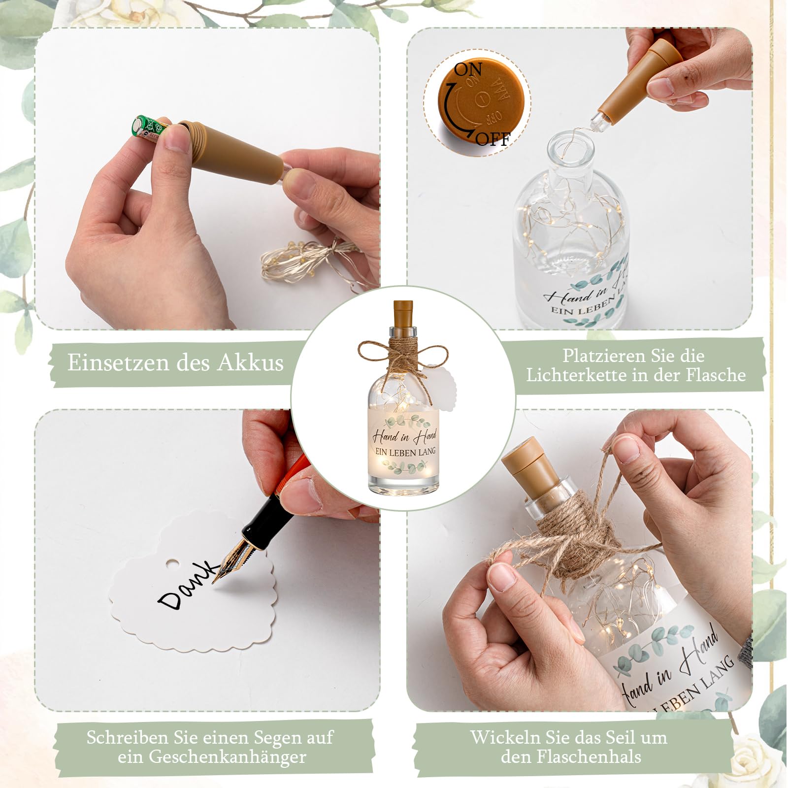 Kit de lumières LED pour bouteille : vous recevrez 1 bouteille en verre, 1 guirlande lumineuse LED, 1 corde, 6 listes de souhaits adorables, 1 pendentif en forme de cœur. Facile à utiliser : la lumière de bouteille LED est très facile à utiliser ; il suffit d'insérer la guirlande lumineuse dans la bouteille, d'insérer le bouchon avec la guirlande lumineuse directement dans le goulot de la bouteille et d'actionner l'interrupteur sur le bouchon pour activer la lumière. Bouteille D'eau Lumineuse Bouteille Lumineuse Avec Gravure Au Choix Bouteille Décorative Avec Guirlande Lumineuse LED Fonctionne Avec Piles Idée Cadeau Noël, Anniversaire Pour Jeunes Et Moins Jeunes Motif Au Choix Bouchon Led Bouteille pour exprimer votre bénédiction et votre amour - Matériau : verre, papier kraft. C'est une idée de cadeau créative. Nos beaux motifs et textes rendent chaque bouteille avec LED spéciale. Surtout pour les femmes, cette bouteille lumineuse féérique avec des lumières chaudes et douces est un excellent cadeau. - Il y a un risque que l'appareil s'emmêle. ✅ Niveau supérieur : nous avons poussé le jeu Flunkyball populaire à un nouveau niveau. 18 Pièces] Led Bouteille Guirlande, Guirlande Lumineuse, 2M 20 Led Lampes De Bouteille Étanche Bouteille lumineuse Commémorative Ornement avec Prénom et Date... La couleur de l'article peut varier de celle de la photo en fonction des paramètres d'affichage et de luminosité de votre - Les produits fragiles doivent être retirés avec précaution afin qu'ils ne se cassent pas. Spécification : - Nom du produit : bouteille lumineuse LED. Atmosphère romantique : la lumière LED en bouteille avec inscription en allemand « N'attendez pas le moment parfait et faites le moment parfait – une atmosphère chaleureuse et confortable et adaptée, les guirlandes lumineuses LED chaudes sont flexibles et peuvent facilement prendre la forme souhaitée ; les lumières décoratives peuvent être allumées rapidement pour créer une ambiance romantique et confortable. Contenu de la livraison : 1 lampe pour bouteille., 1 guirlande lumineuse LED., 6 listes de souhaits., 1 corde plate. Bouteilles lumineuses : la sélection produits Leroy Merlin de ce vendredi au meilleur prix ! Retrouvez ci-après nos 176 offres, marques, références et promotions en stock prêtes à être livrées rapidement dans nos magasins les plus proches de chez vous