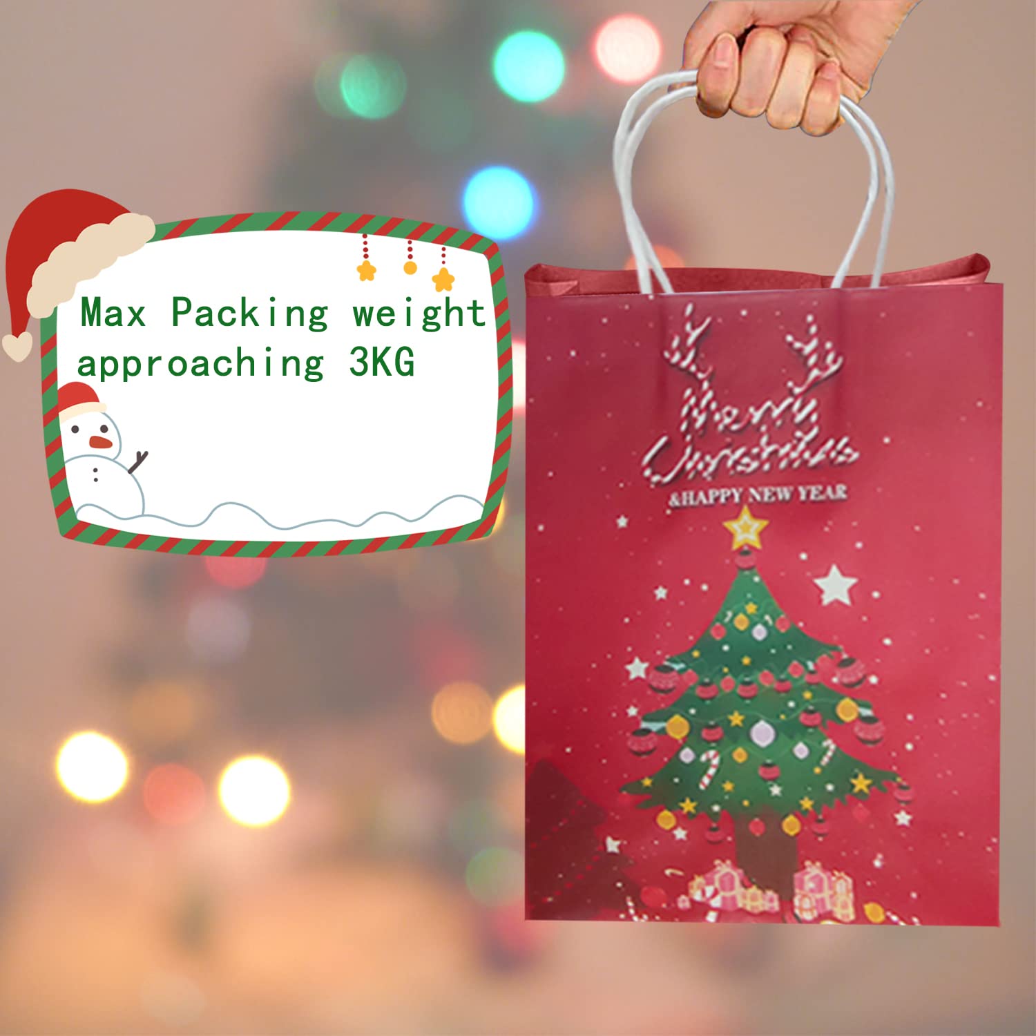 Características: - Las bolsas de papel navideñas son perfectas para envolver regalos de Navidad - Las bolsas de regalo de Navidad con asa son fáciles de transportar y usar - Los diferentes tamaños de bolsas son adecuados para el embalaje de diferentes artículos Especificaciones: - Material: papel - Color: rojo - Tamaño: 2 tamaños, como se muestra en la imagen El paquete incluye: - 3 x Bolsa de regalo de Navidad con asa (patrón de alce) - 3 x Bolsa de regalo de Navidad con asa (Patrón Papá Noel) - 3 x Bolsa de regalo de Navidad con asa (Patrón de árbol de Navidad) Découvrez notre sélection de sacs cadeau Noël : kraft, papier, tissus, pochettes festives. Idéal pour boutiques, vitrines, cadeaux clients Estas bolsas de papel pueden ser reciclables y livianas, adecuadas para el uso diario. Pochette Cadeau Noel Avion En Papier KostaTech Sacs De Cadeaux De Noël,Sac En Papier De Noel Avec Poignée,Sac En Papier Kraft Pour Sacs Cadeaux Noel Sac Noel 🎄 【Uso amplio】 Las bolsas de regalo de Navidad son ideales para envolver regalos de Navidad. Sacs cadeaux en papier Kraft avec poignée, lot de 40 pièces, 18x15x8cm... Pochette Cadeau Noel Grand Format KostaTech Sacs De Cadeaux De 🎄【Tamaño】Nuestra bolsa de papel kraft Feliz Navidad tiene 2 tamaños diferentes y 3 patrones, el tamaño de la bolsa grande es de 21x27 cm y se adapta a regalos grandes como vinos de muñecas; el tamaño de la bolsa pequeña es de 15x21 cm y se adapta a regalos pequeños como dulces de chocolate, etc. 🎄【Material Premium】La bolsa de regalo de Navidad está hecha de papel kraft de alta calidad, que es ecológico y duradero.