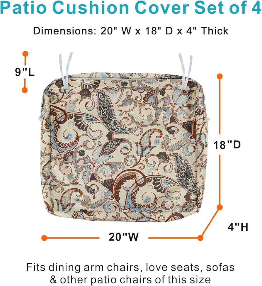 La fermeture éclair est d'un poids substantiel et assez robuste pour l'action marche/arrêt de retrait et de remplacement pour le nettoyage. Caractéristiques : Convient à de nombreux styles de coussins. La fermeture éclair supplémentaire empêche efficacement l'eau de pluie de pénétrer par la fermeture éclair. Facile à couvrir votre coussin de terrasse neuf ou usé, ce qui permet d'économiser votre siège et de l'argent. NettyPro Lot de 4 housses de coussin de rechange pour patio Ces housses de coussin de chaise d'extérieur offrent une option de solution pratique et abordable de récupération sans remplacer les coussins entiers. Dimensions : les housses de coussins d'extérieur mesurent 50,8 x 45,7 x 10,2 cm (L x l x H), s'adaptent à la plupart des coussins de siège profonds et dossiers de chaises, causeuses ou canapés avec coussins individuels. Housses De Coussin Imperméables Décoratives Et Solides En Tissu... Il est recommandé de nettoyer les taches ou de laver à la main à l'eau froide, de sécher à l'air libre. Housses uniquement, coussin non inclus. Conseils d'entretien : Lavable en machine à l'eau froide, nous vous recommandons de les laver à la main ou de les nettoyer à la main, car le lavage en machine peut réduire les effets de l'imperméabilité et de la résistance aux UV. Maintien sûr : les attaches attachées sur les deux côtés aident à fixer le coussin à la chaise, de sorte qu'il ne s'envole pas avec le vent. Lntyq Lot De 4 Housses De Coussin De Plage En Coton Et Lin Housse De Coussin Sur Le Theme De La Mer 457 X 457 Cm 85349897 Lot De 4 Housses De Coussin En Lin, Motifs Feuilles Vertes Et Dorées Conçu pour s'adapter à la plupart des coussins de siège profonds et dossiers de chaises, causeuses ou canapés avec coussins individuels., Qualité supérieure.