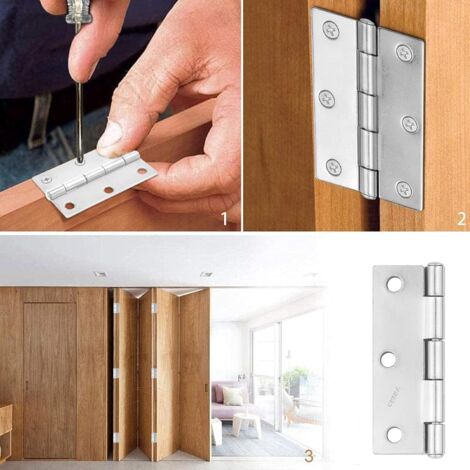 Charnière de porte 4 pièces, charnière amovible, charnière silencieuse, charnière de porte d... Caractéristiques : Couleur : argenté. Dimensions totales : 50 x 36 x 1,2 mm (L x l x H). LOLYSIC Lot de 2 charnières de p, 300 x 30 mm, Cerniere per pforte acier inoxydable 304 Charnières De Portes Charnière De Porte Rotative Charnières En Acier Inoxydable Charnières Dissimulées Réglables à Charniere Pour Porte Dimensions détaillées : la taille de l'extension est de 50 x 36 mm (L x l), le diamètre du trou de montage est de 5 mm, la taille de la vis est M5 x 15 mm Achat confortable : si vous avez des questions sur nos produits, veuillez nous contacter par e-mail sur Amazon, afin de fournir à nos clients une expérience d'achat confortable, nous vous répondrons dans les 24 heures. Mais également utilisé dans les portes de commode, les portes de table de chevet, les portes d'armoire et plus Répond à vos besoins de travail et de vie. Que votre porte s'ouvre à gauche ou à droite, vous pouvez utiliser une charnière rabattable. Les mesures étant prises à la main, les tailles indiquées peuvent varier de 1 à 2 mm., 3., Les images du produit sont aussi proches que possible de la réalité, mais les couleurs sont légèrement différentes en raison de l'équipement, de l'éclairage et de l'écran. Lot de 2 charnières de porte à ressort de 10,2 c, charnières de fenêtre robustes en acier... Diamètre du trou de montage : 5 mm.